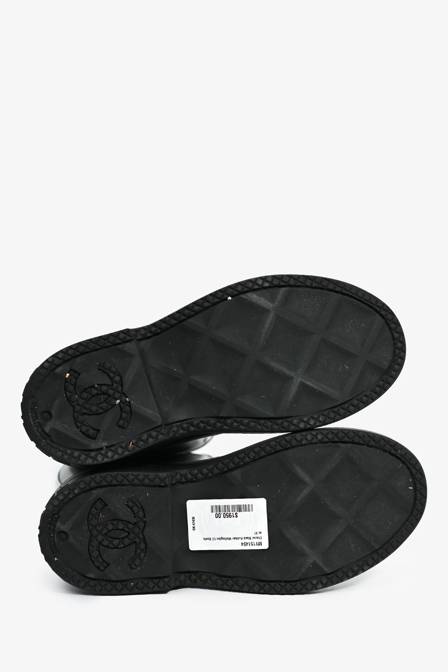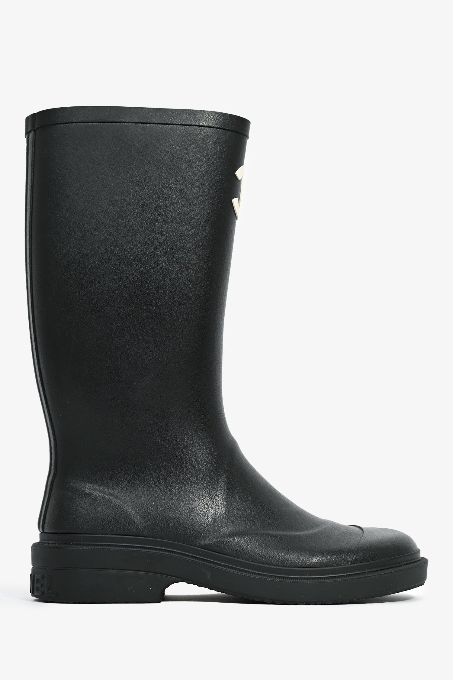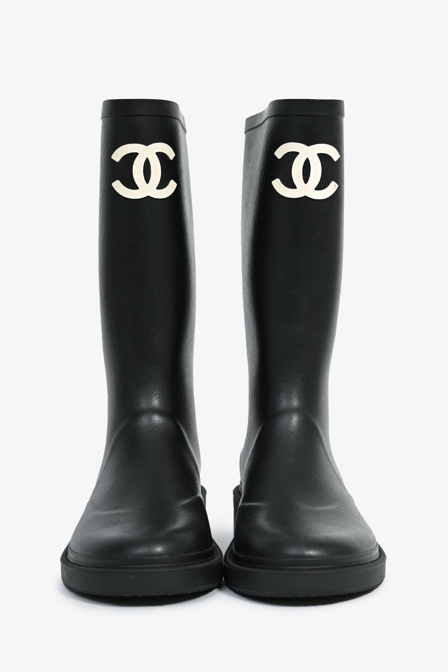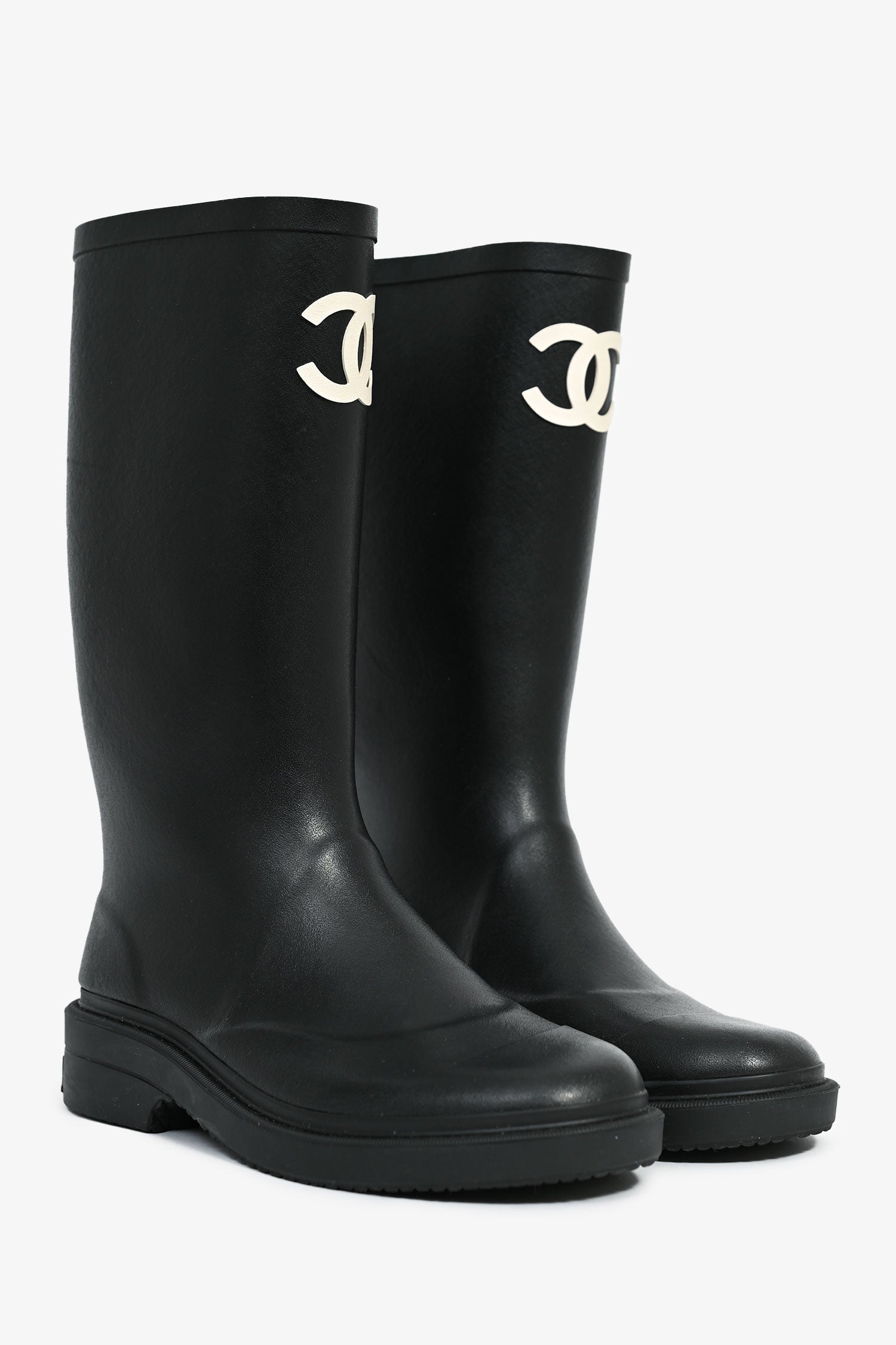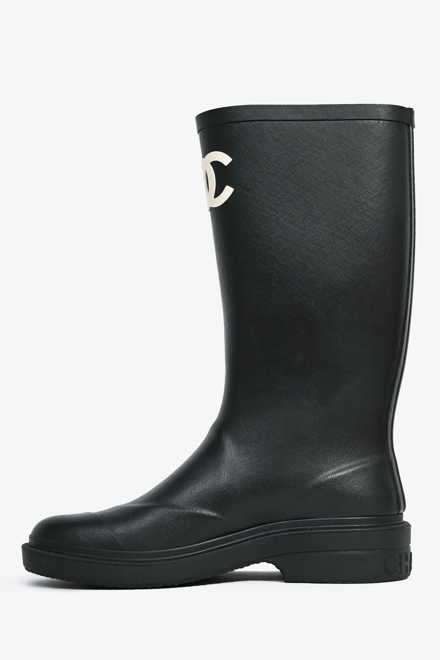 Pre-Loved Chanel™ Black Rubber Wellington CC Boots Size 37