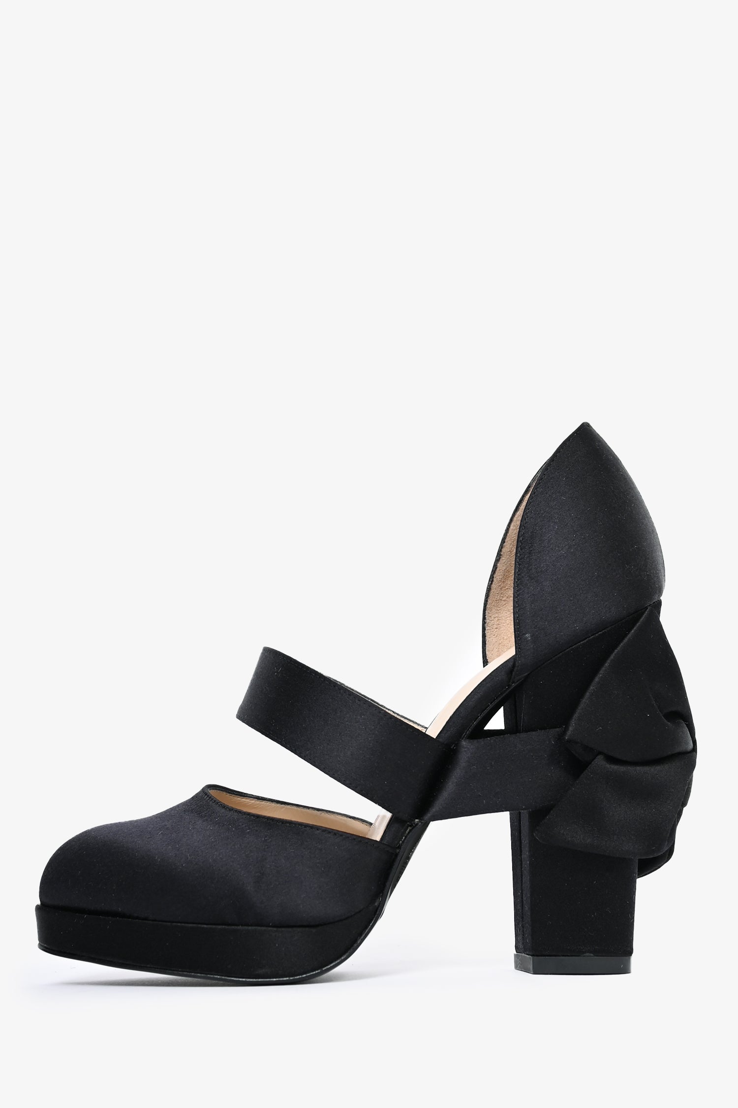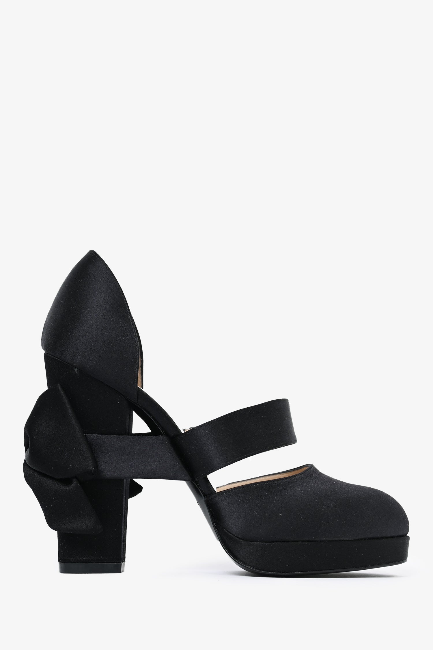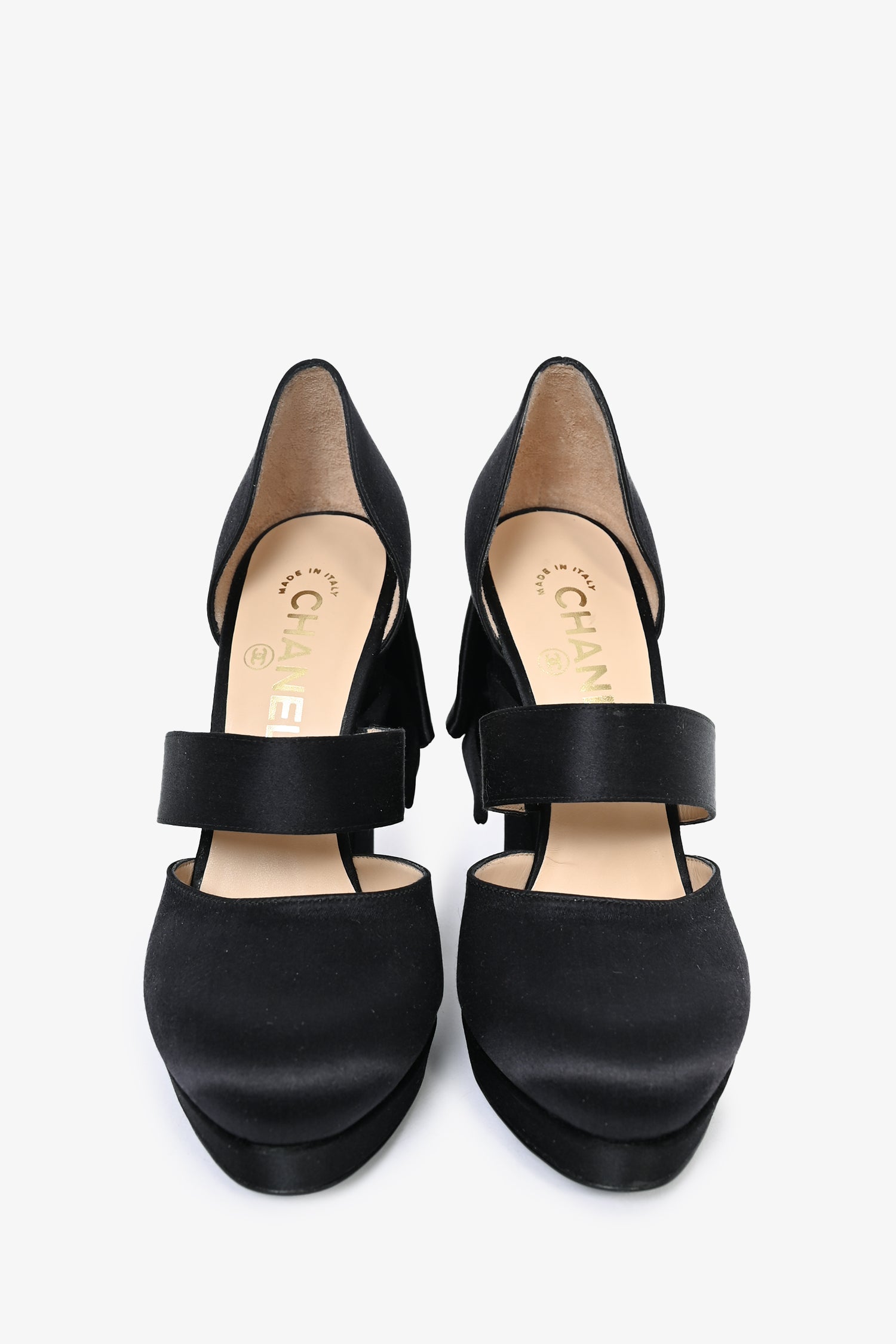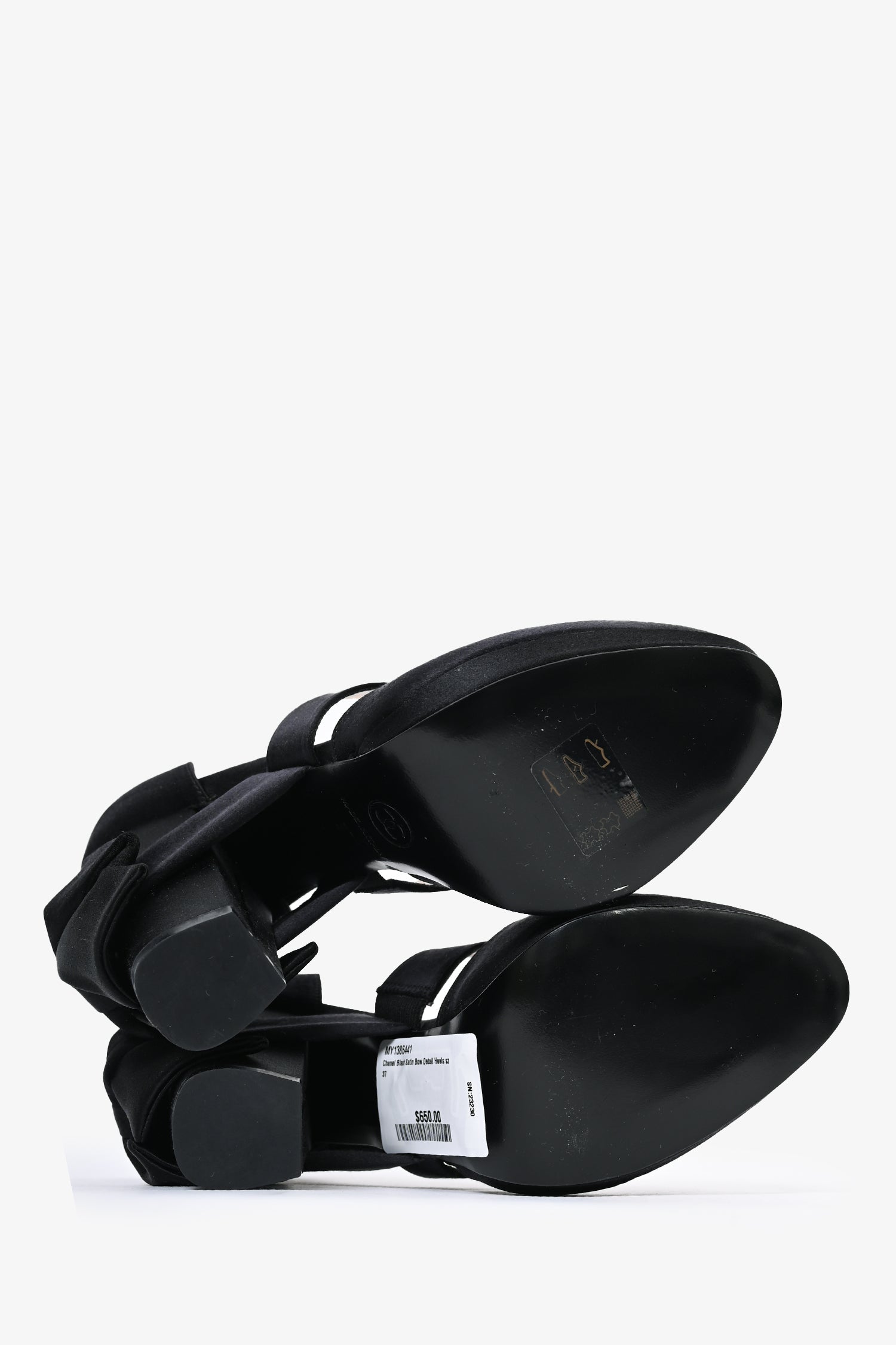 Refresh availabilityPre-Loved Chanel™ Black Satin Bow Detail Heels. Covered satin throughout. Round toe.