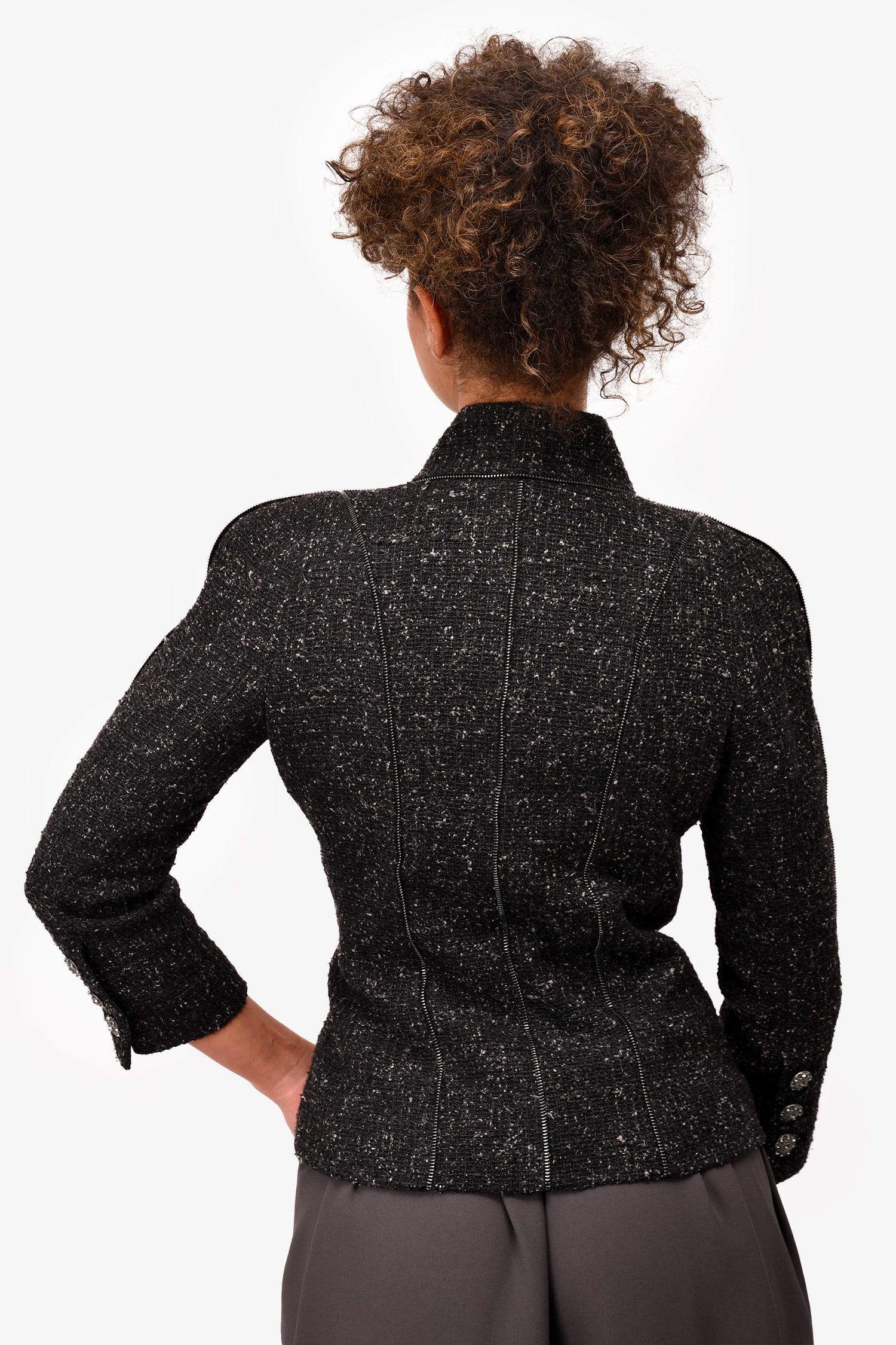 Pre-Loved Chanel™ Black Silk/Tweed Crystal Button Zip-Up Blazer Size 36