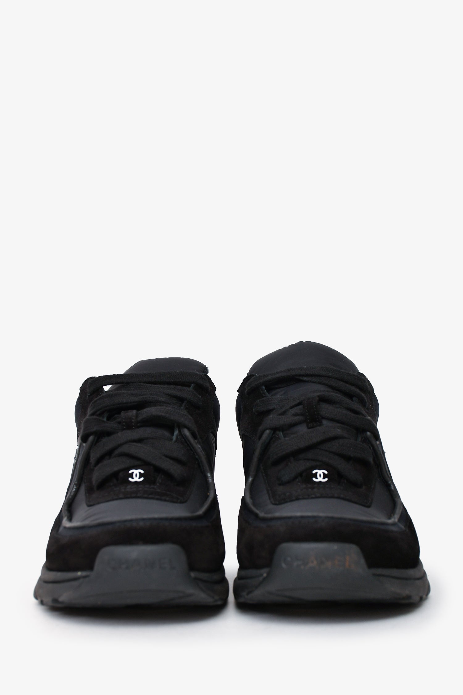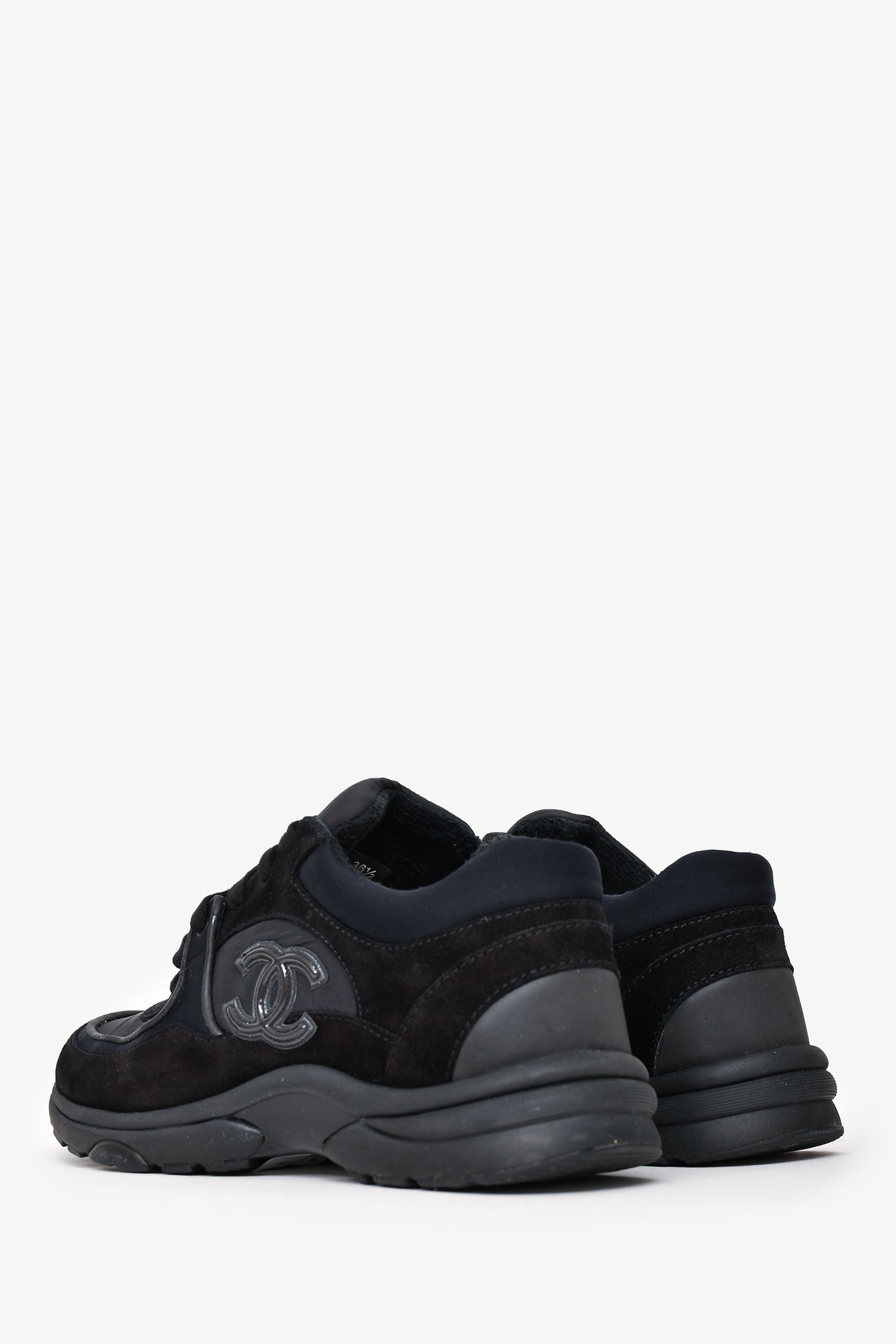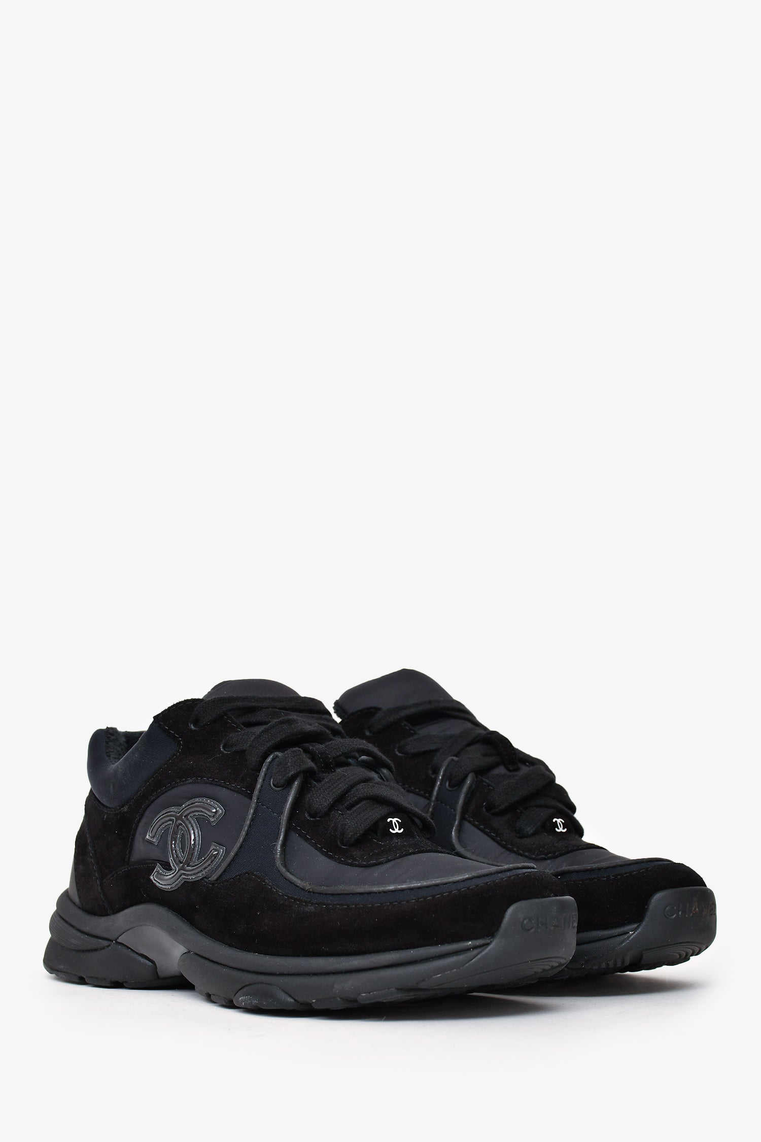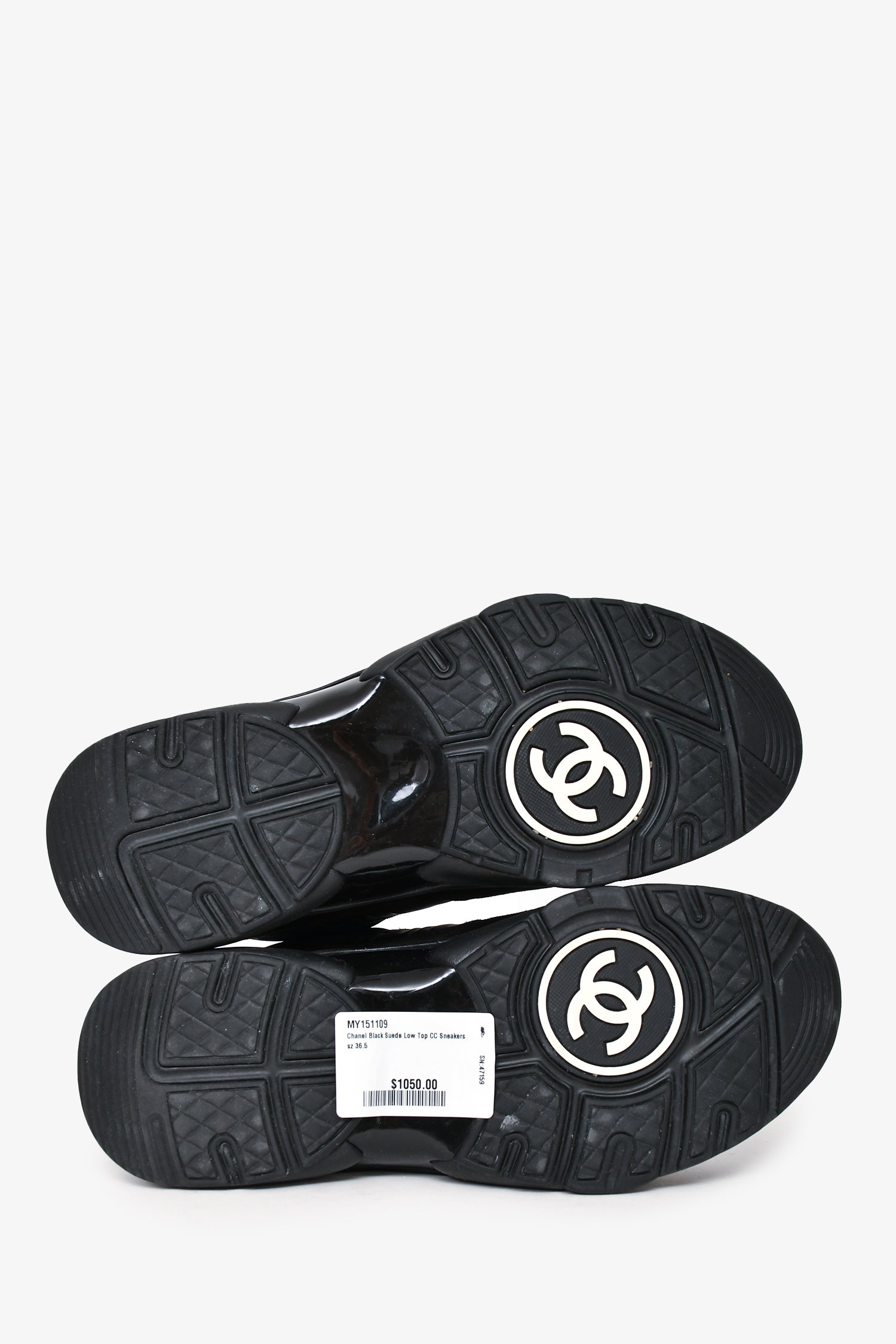 Pre-Loved Chanel™ Black Suede Low Top CC Sneakers Size 36.5