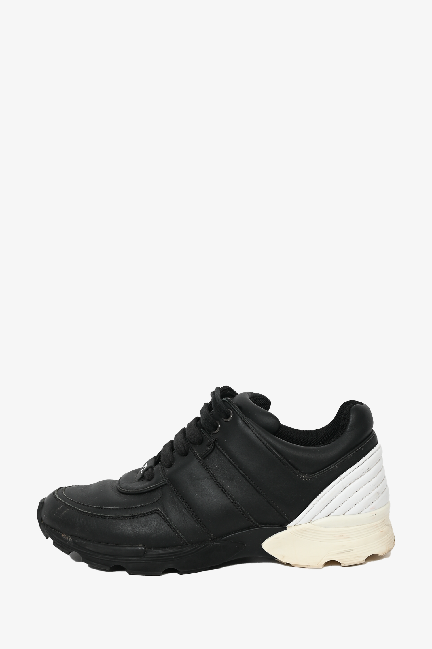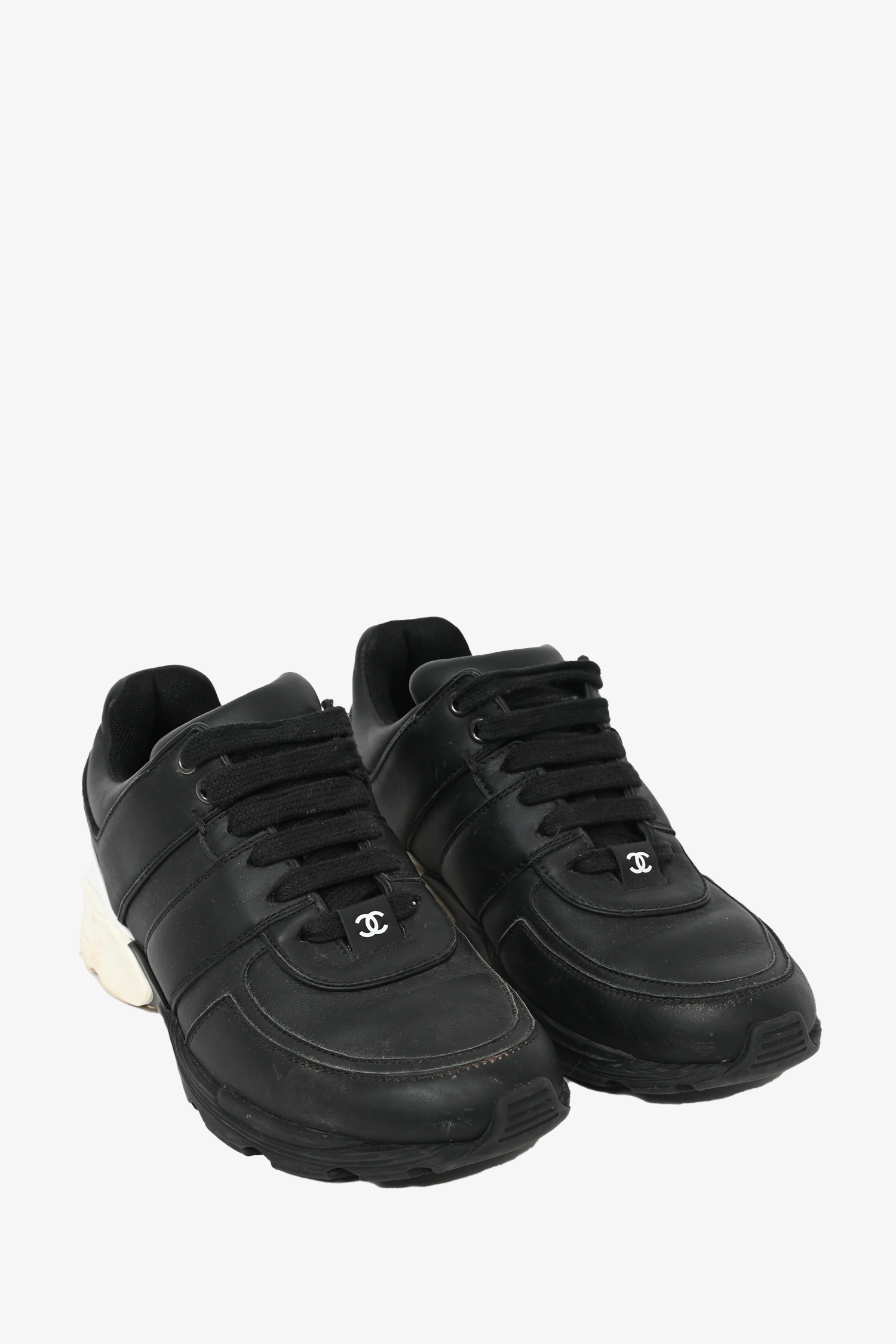 Pre-loved Chanel™ Black/White Leather CC Sneakers Size 37
