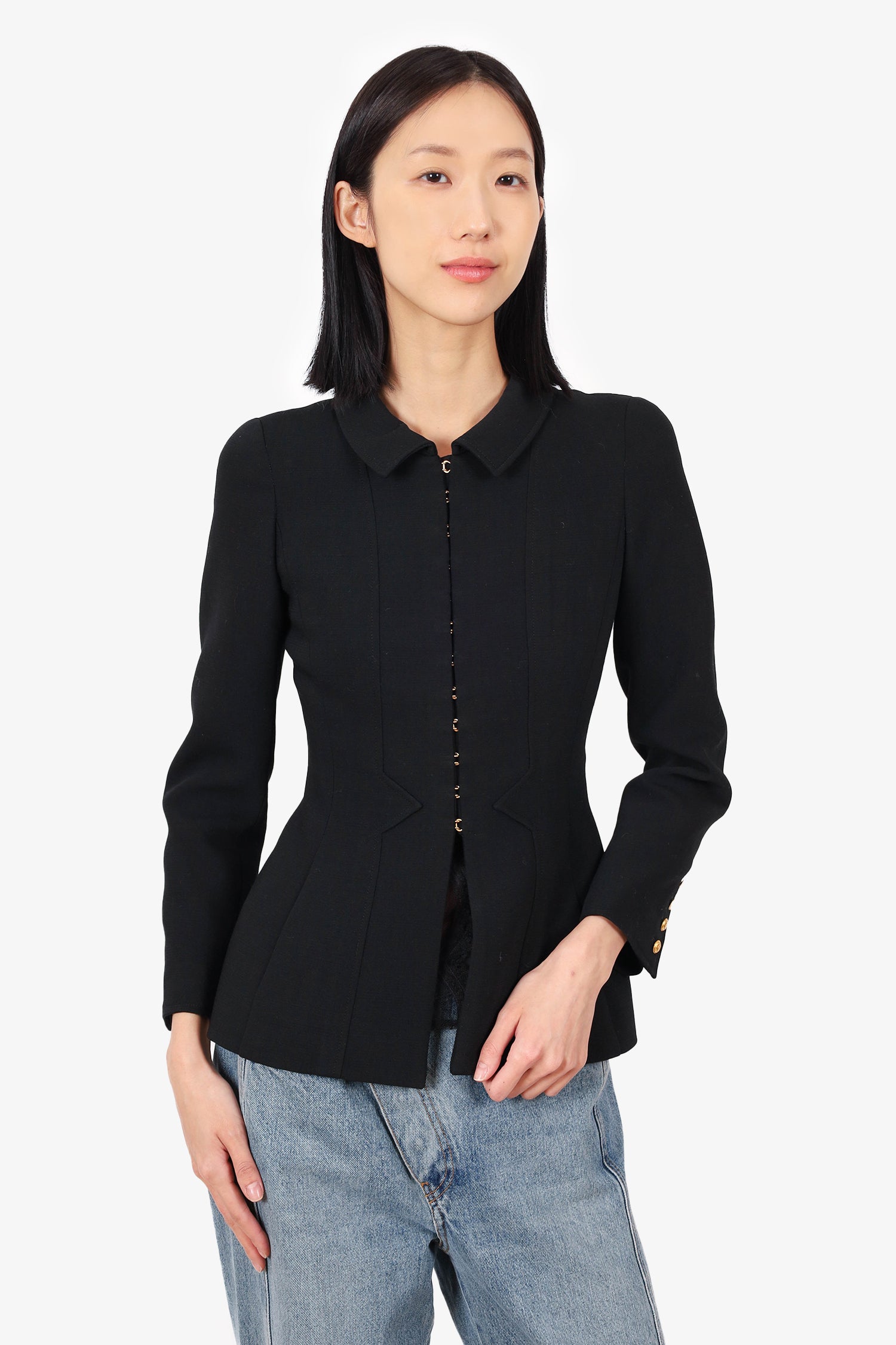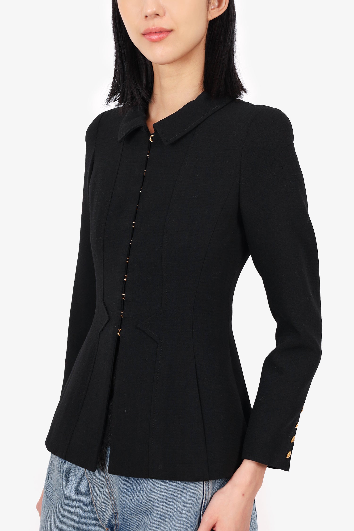 Pre-Loved Chanel™ Black Wool Gold Button Detail Blazer Size 34