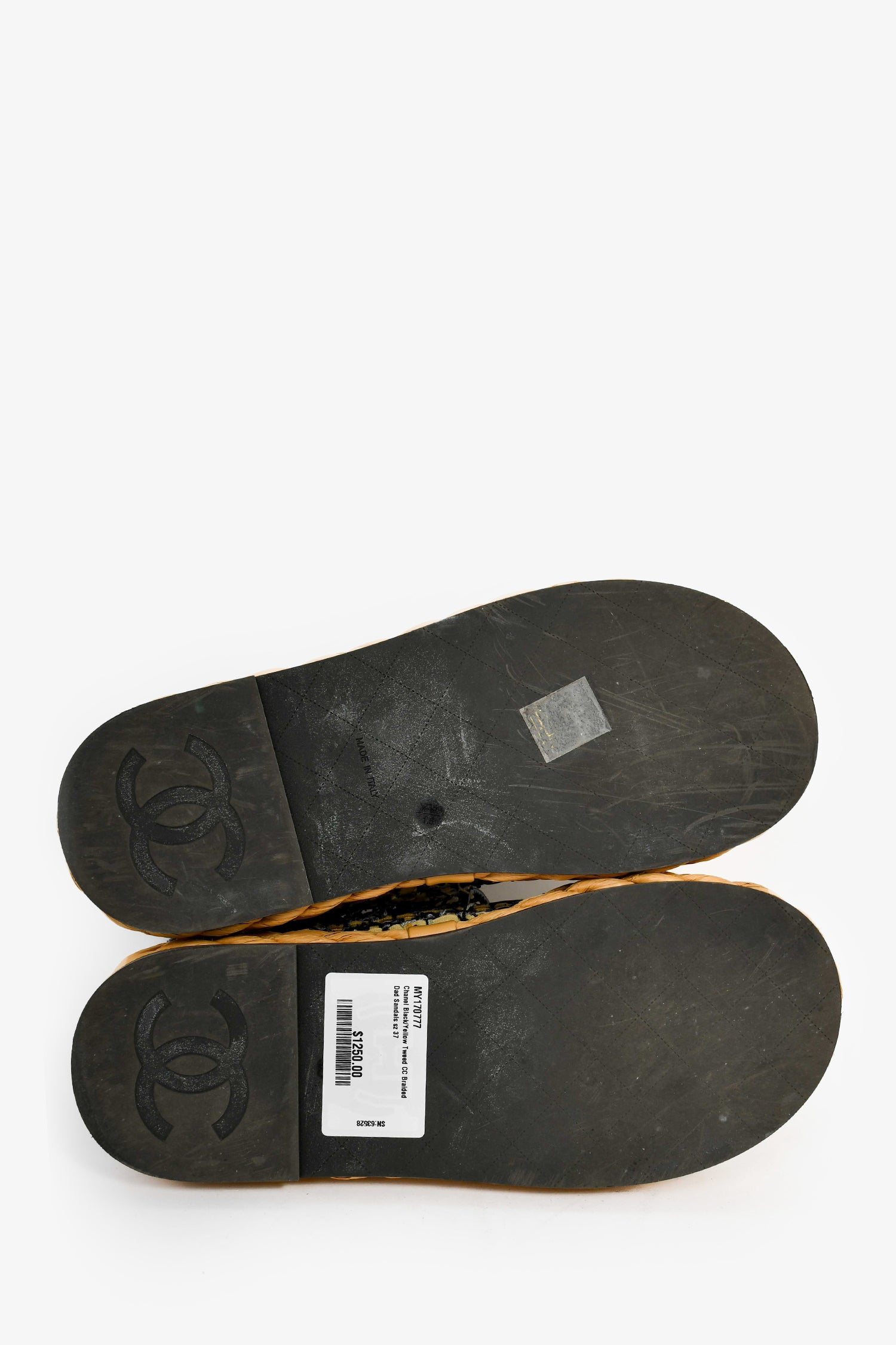 Pre-Loved Chanel™ Black/Yellow Tweed CC Braided Dad Sandals Size 37