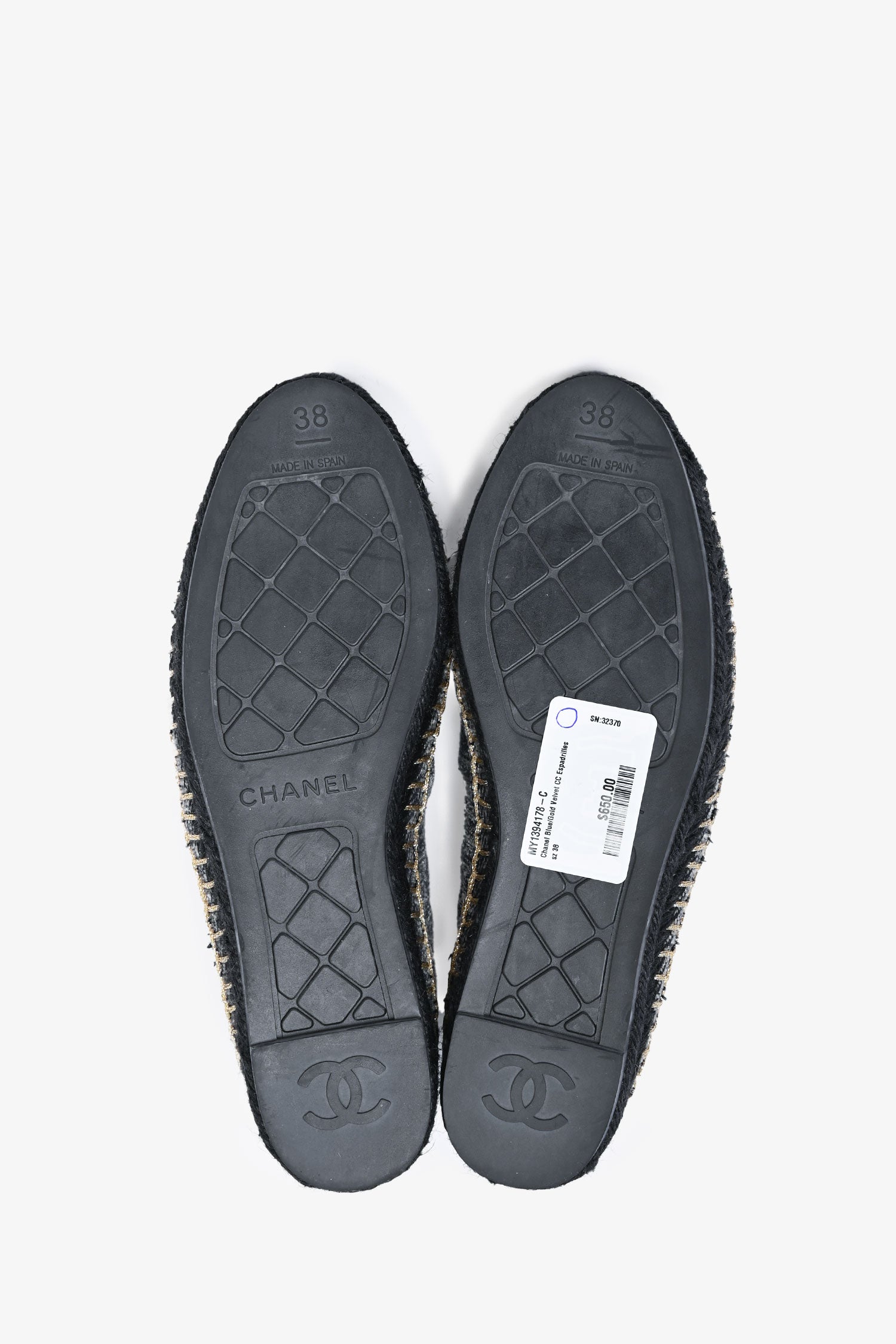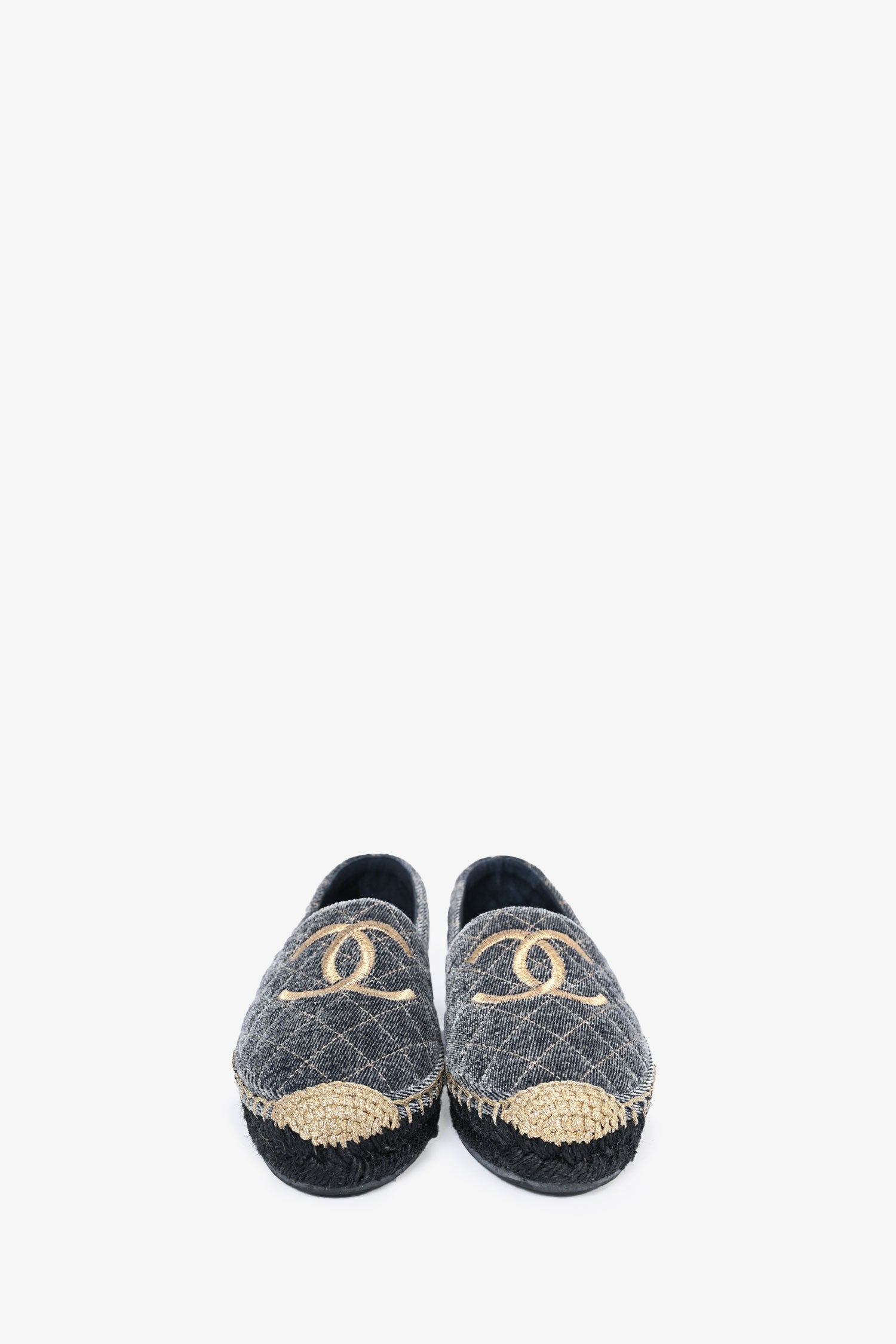 Pre-Loved Chanel™ Blue/Gold Velvet CC Espadrilles Size 38