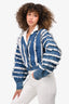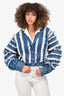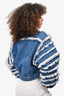 Pre-Loved Chanel™ Blue/White Denim/Silk Ruffle Detail Jacket Size 38