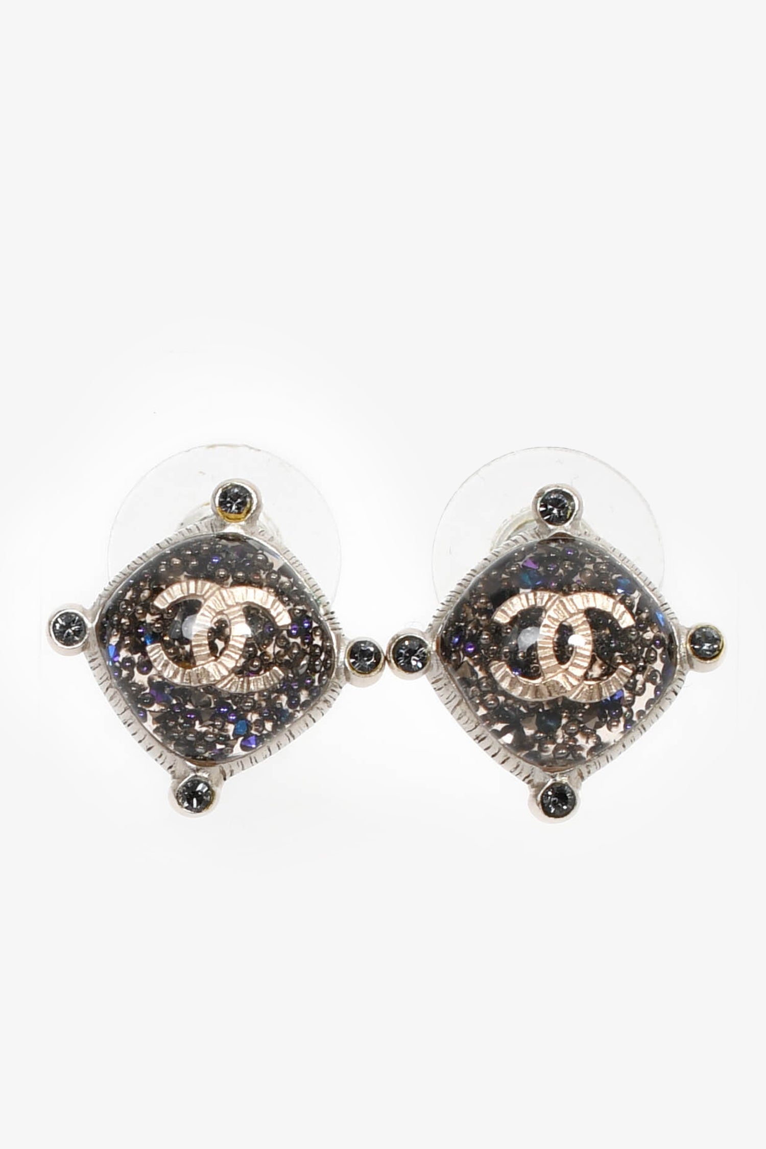 Refresh availabilityPre-Loved Chanel™ CC Logo Silver and Turquoise Earrings. Push-pin backing.