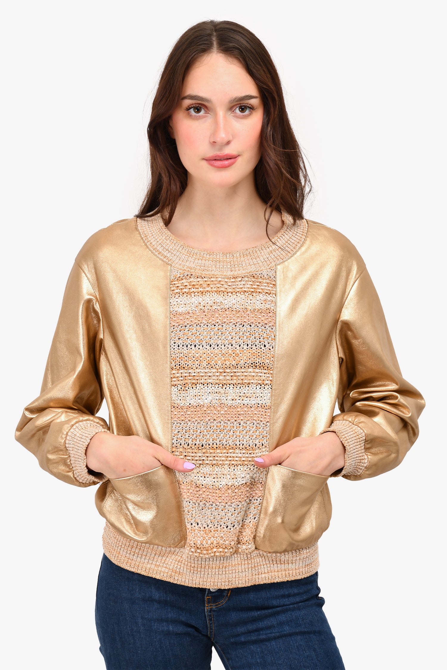 Pre-Loved Chanel™ Gold Lambskin/Knit Double Pocket Top Size 38