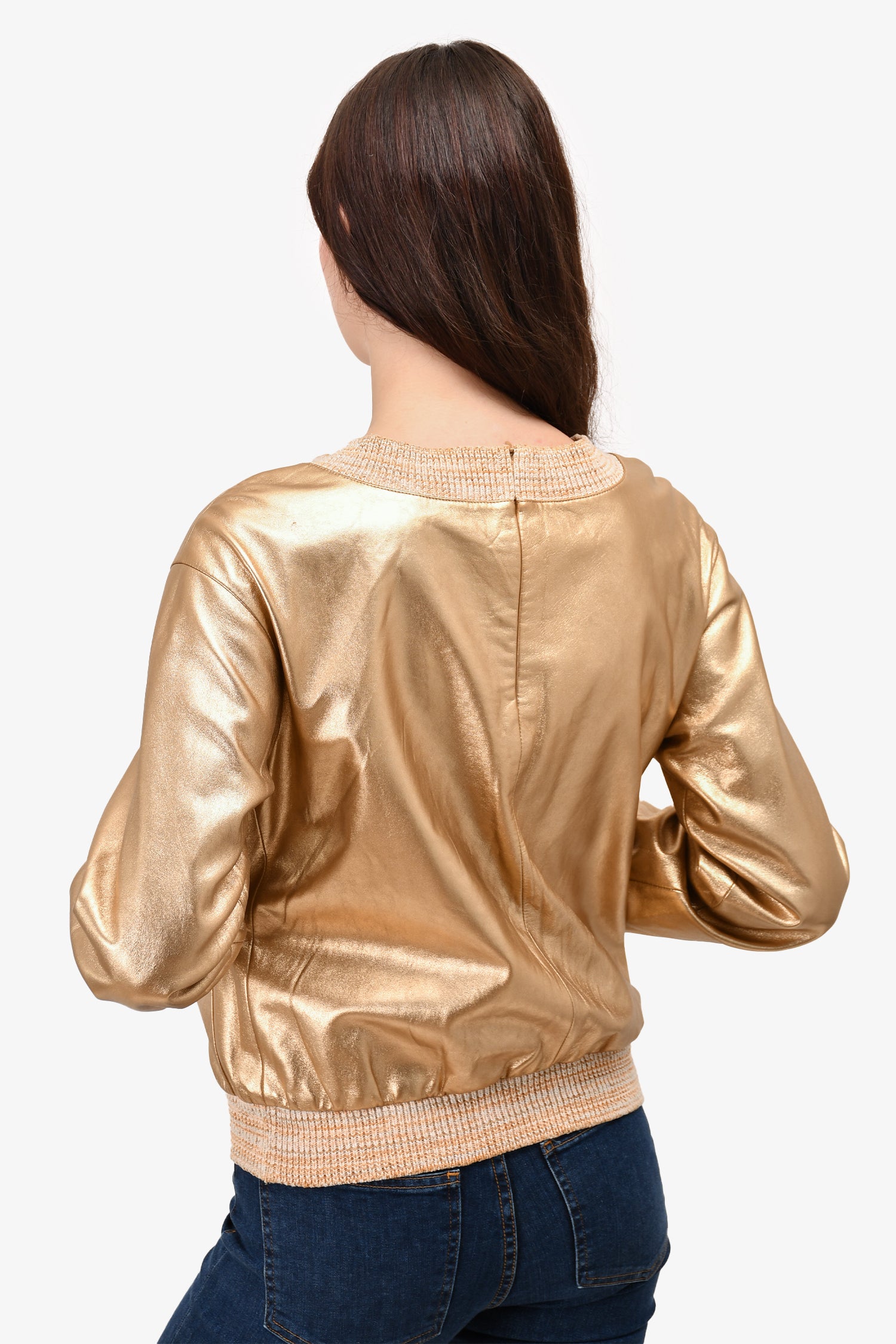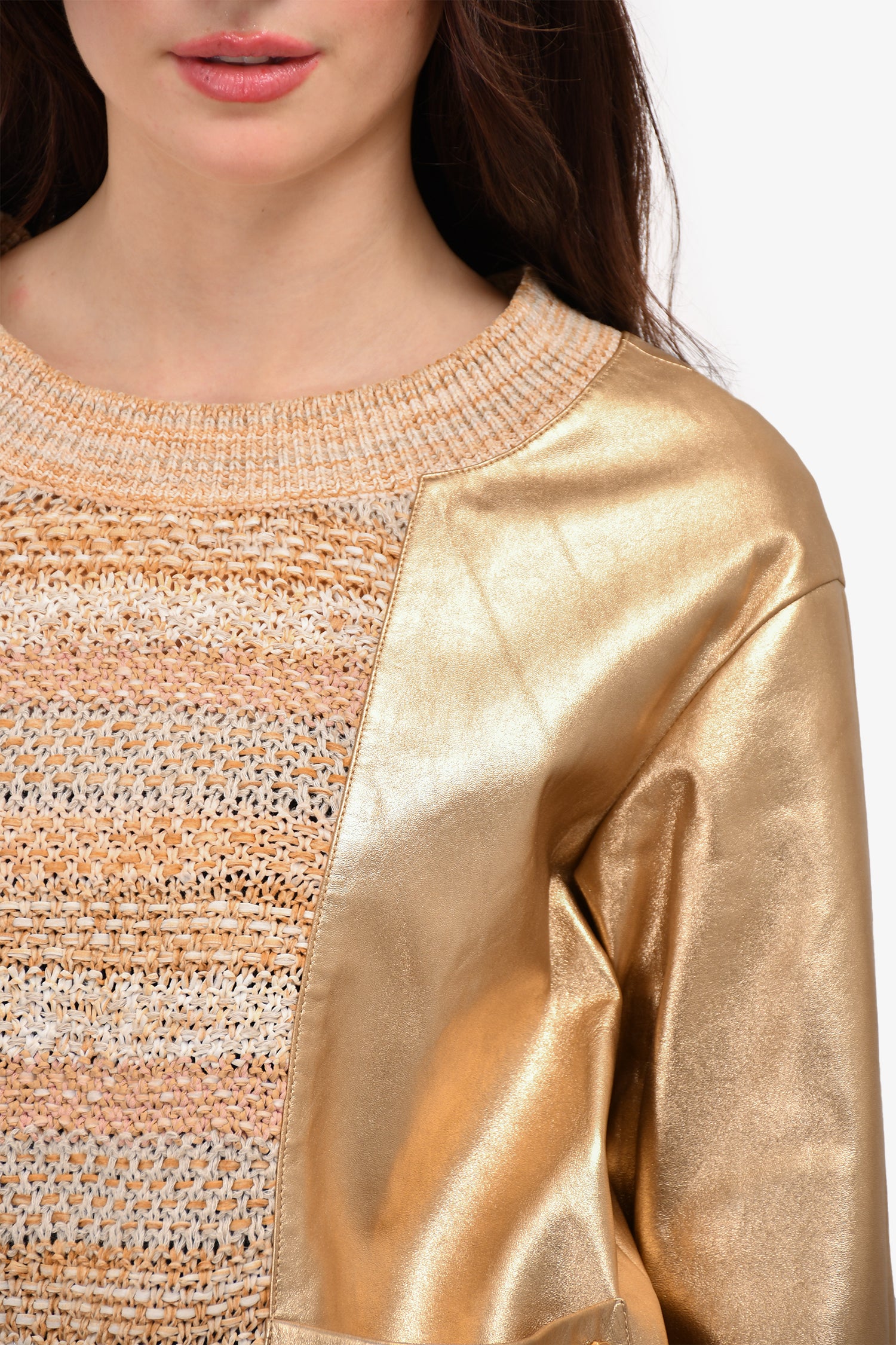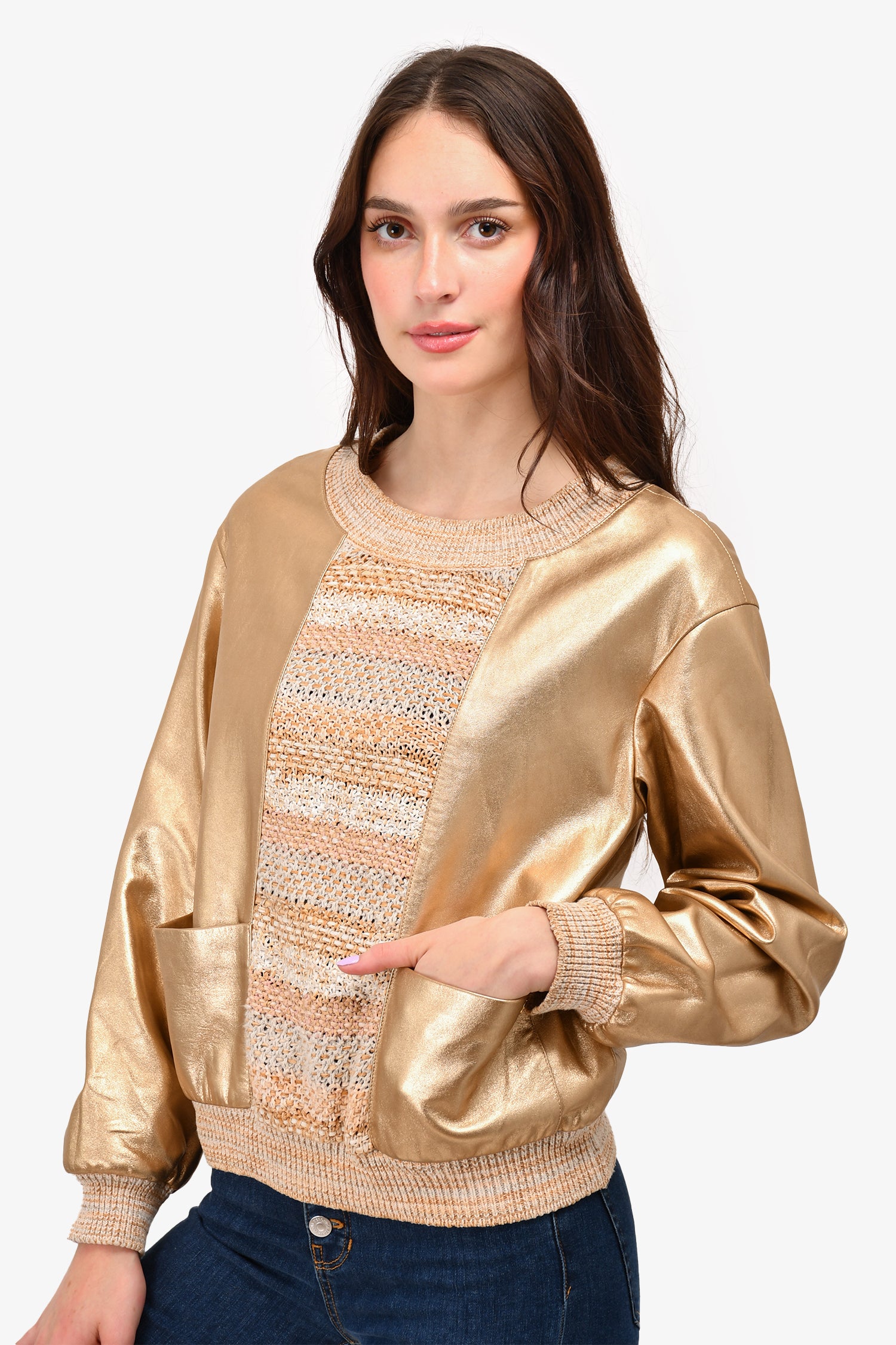 Refresh availabilityPre-Loved Chanel™ Gold Lambskin/Knit Double Pocket Top. Back zipper. Wool trimming. Round neck.