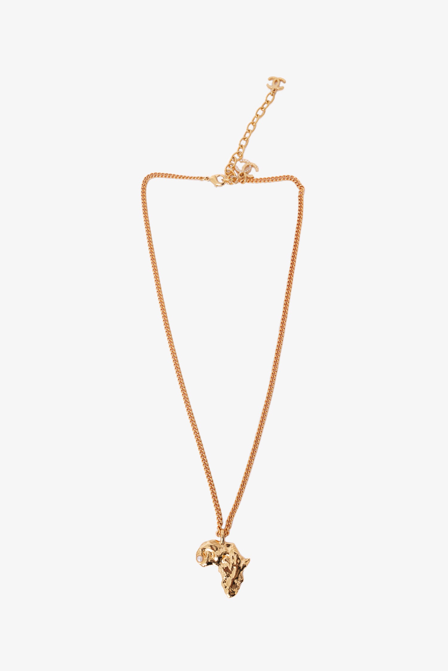Refresh availabilityPre-loved Chanel™ Gold Tone Africa Map Pendant Necklace. Lobster clasp.
