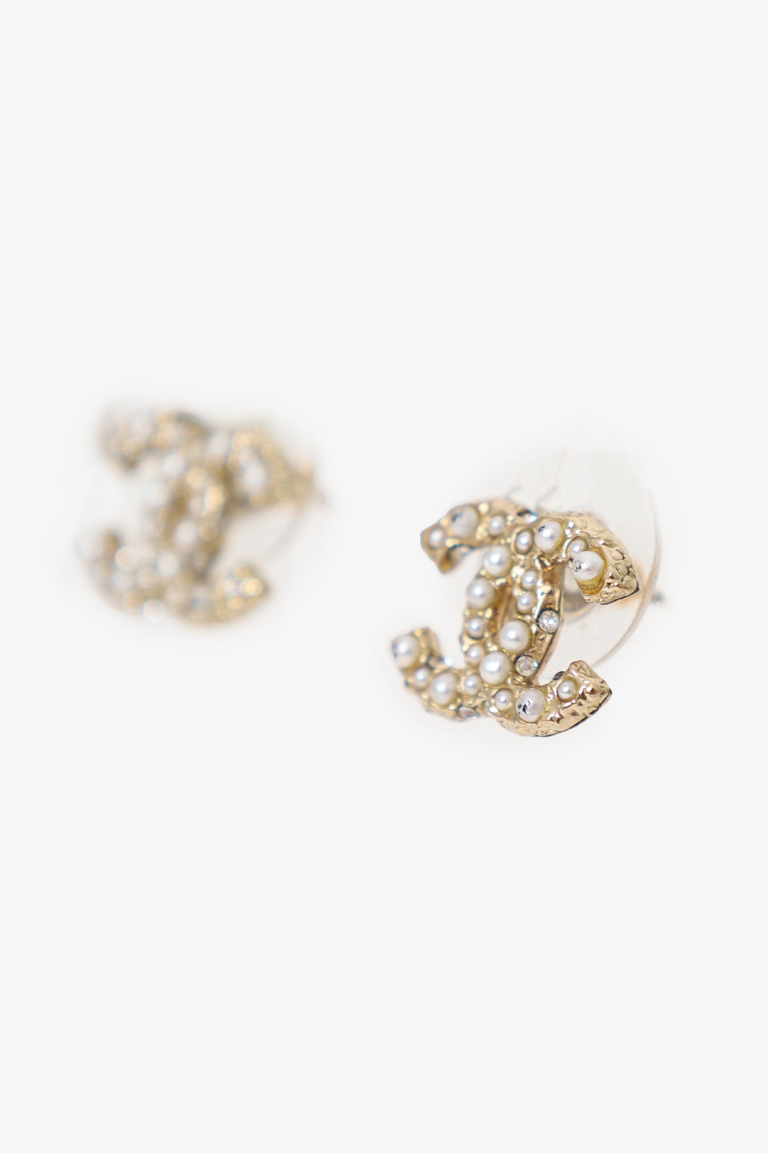 Refresh availabilityPre-Loved Chanel™ Gold Tone CC Pearl Earrings. Rear clear push-pin backing. Gold-tone hardware.