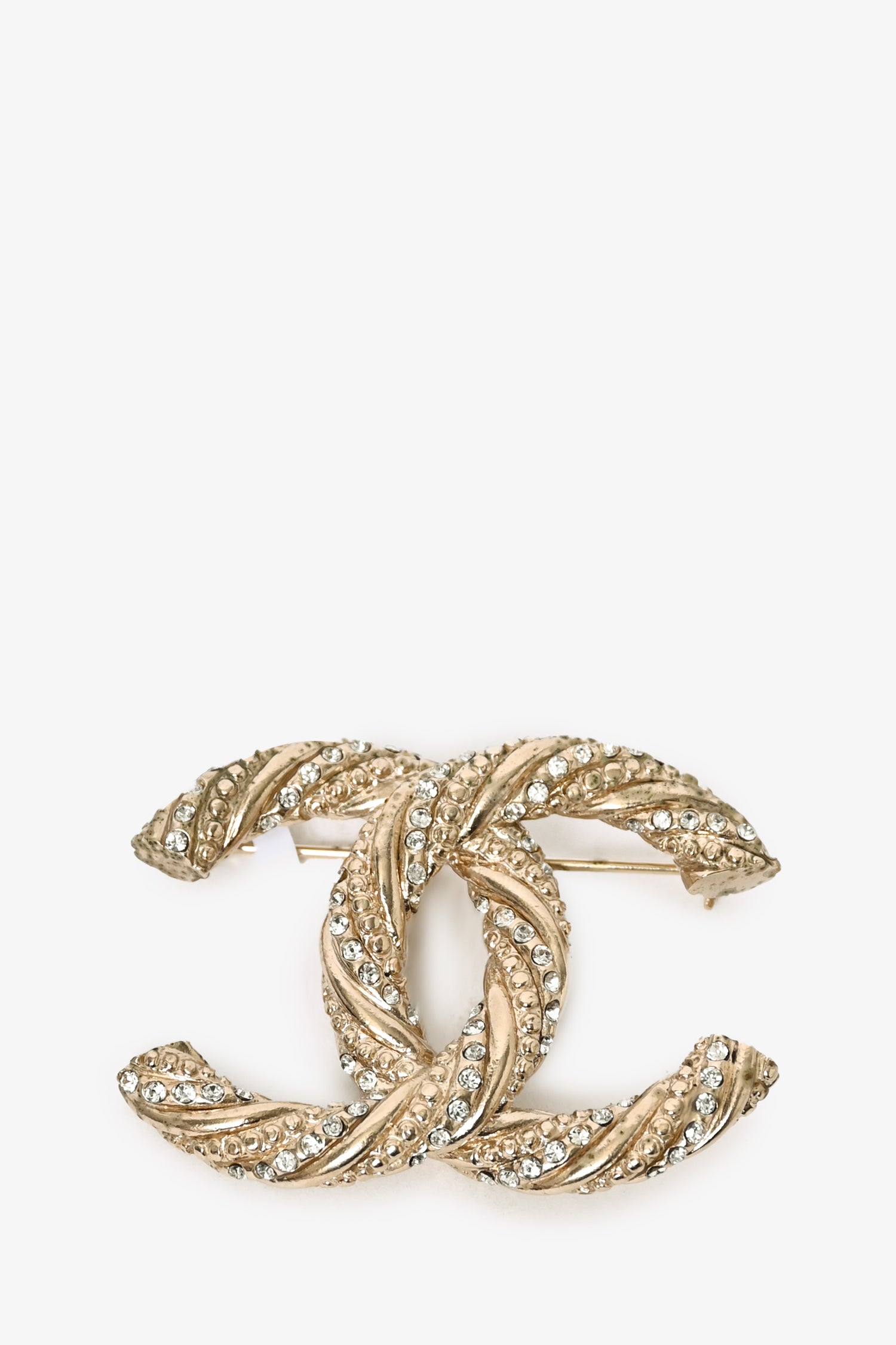 Refresh availabilityPre-Loved Chanel™ Gold Tone Crystal CC Brooch.