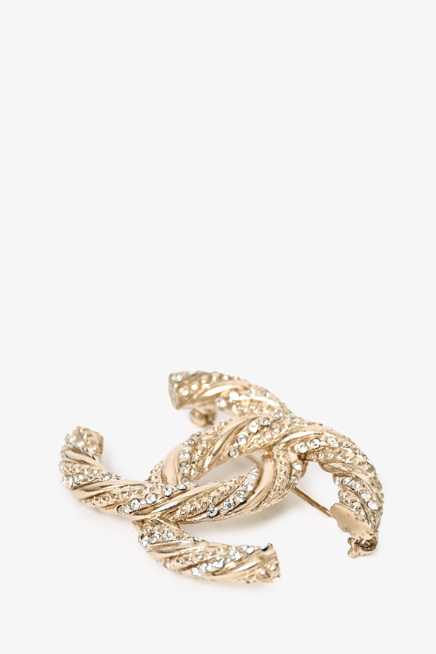 Pre-Loved Chanel™ Gold Tone Crystal CC Brooch