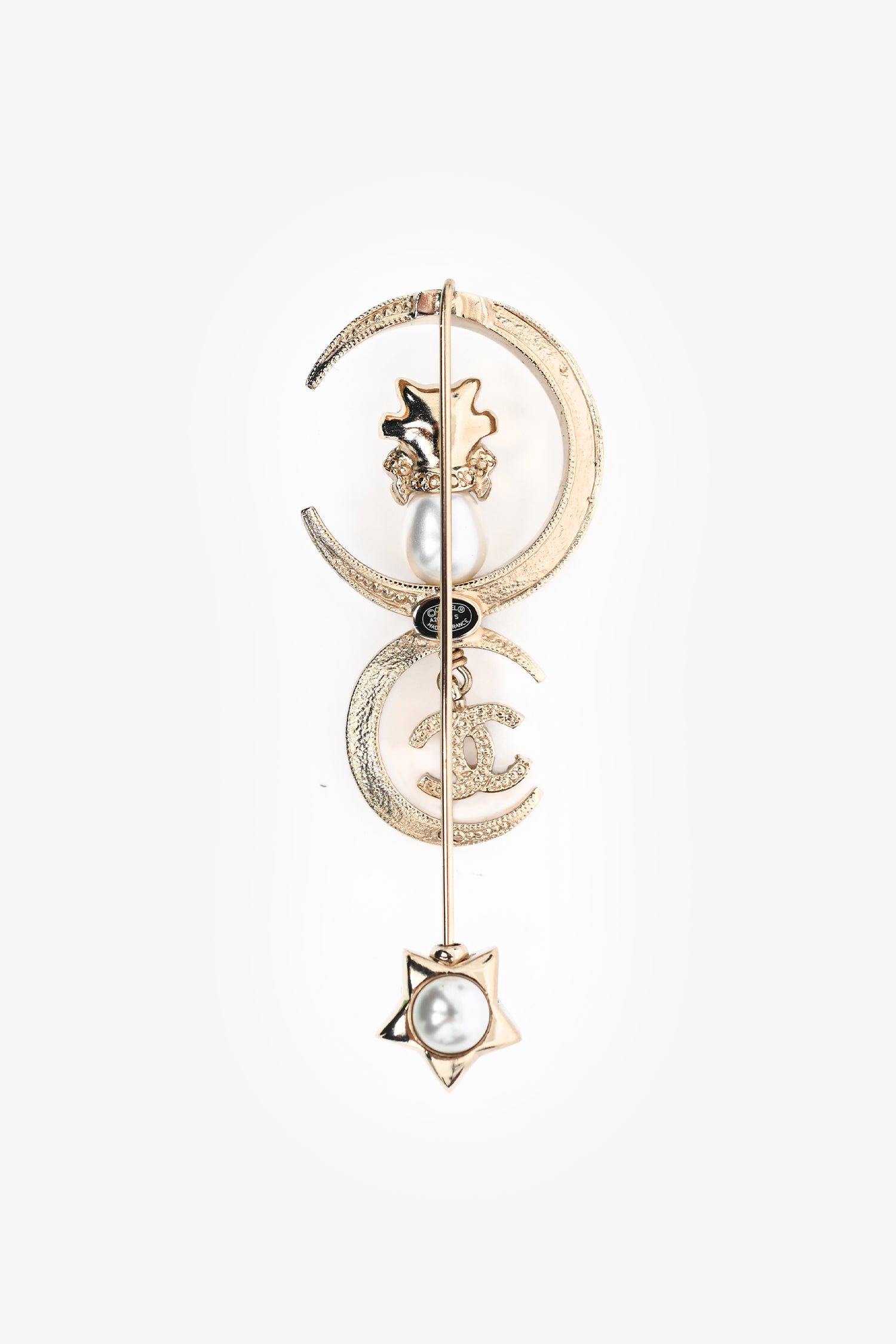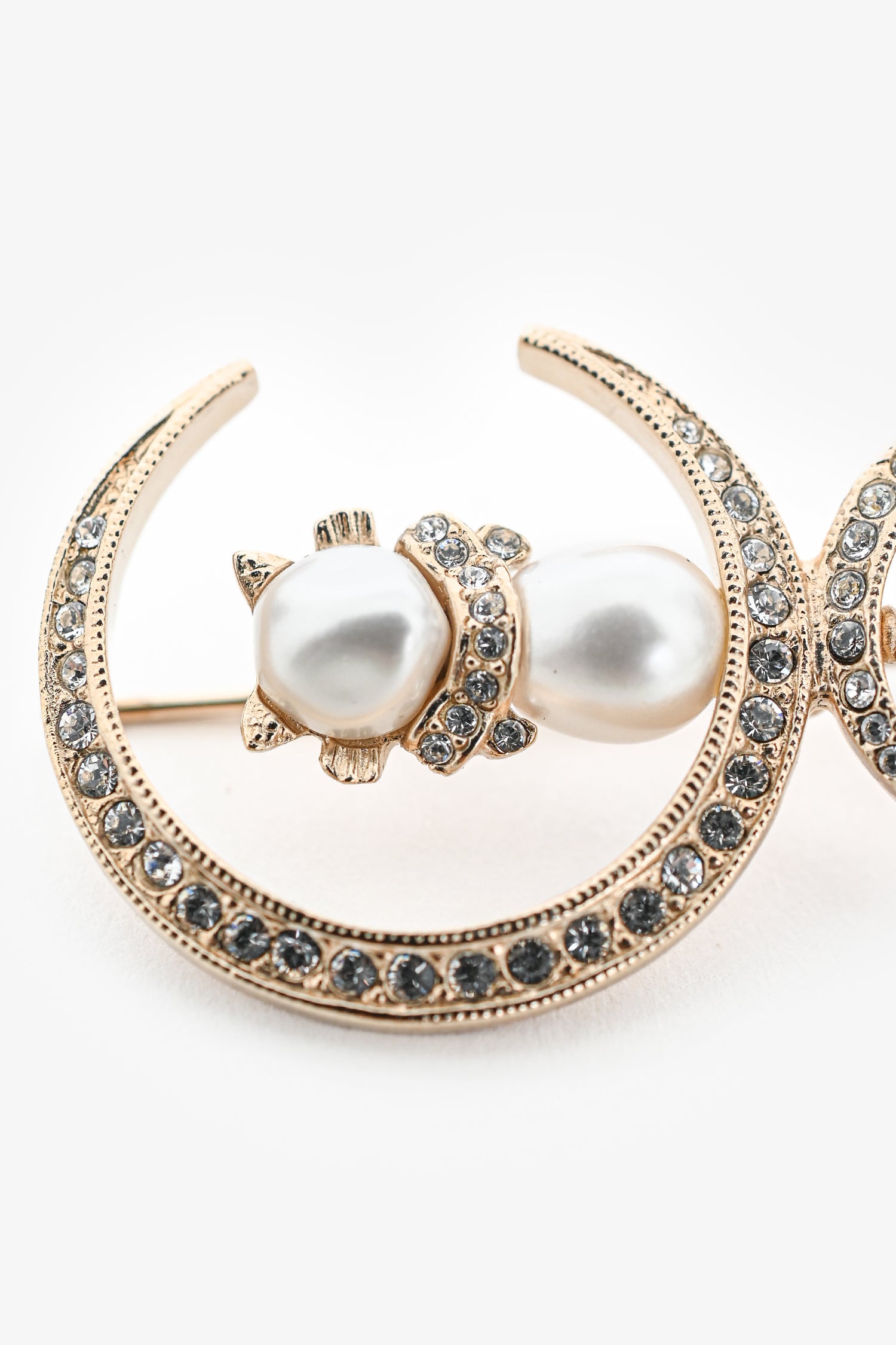 Refresh availabilityPre-Loved Chanel™ Gold Tone Faux Crystal/Pearl Cat Moon Brooch.