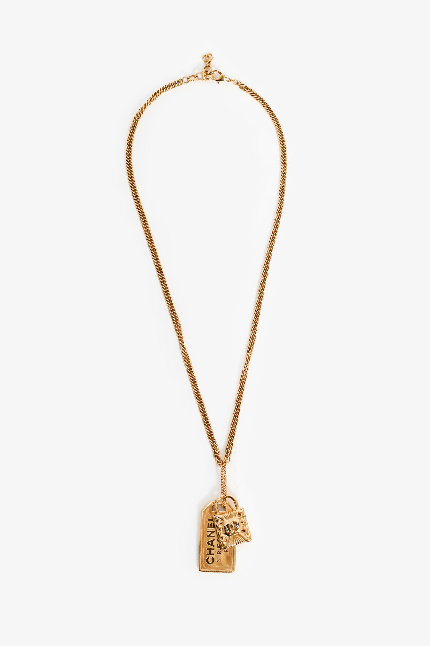 Pre-Loved Chanel™ Gold Toned 2020 '31 Rue Cambon Paris' Lock Charm Pendant Long Necklace
