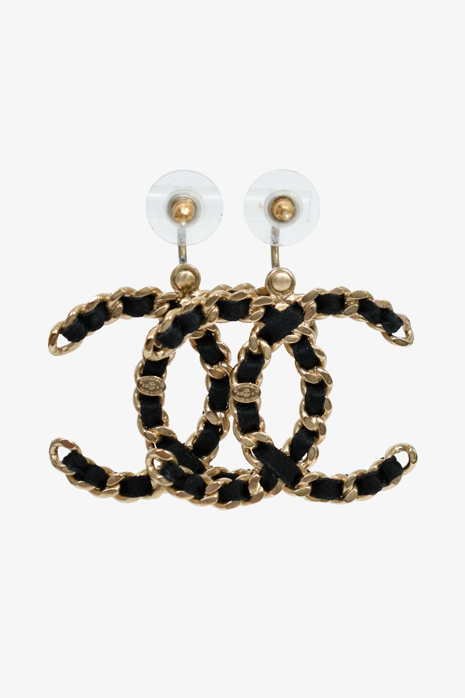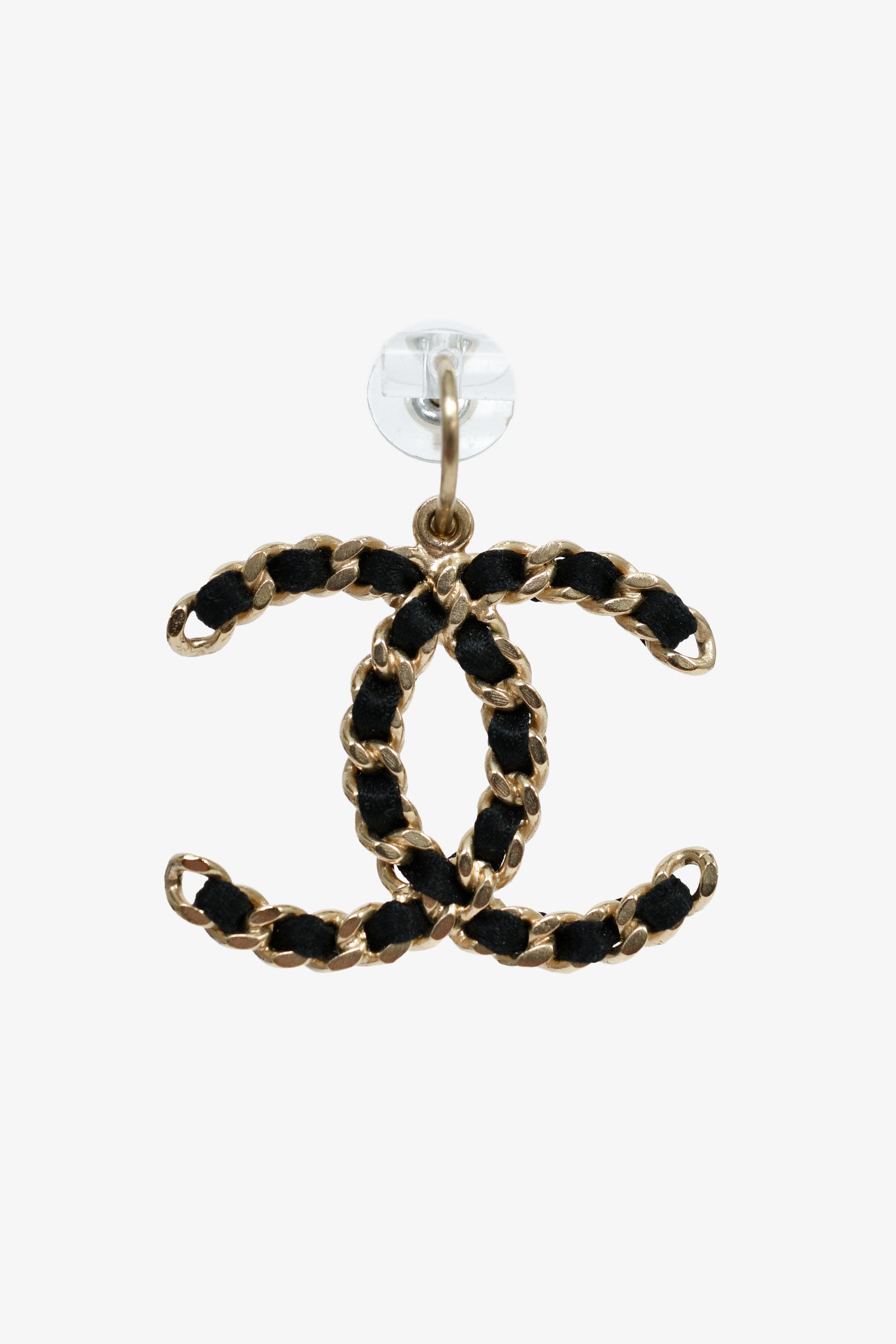 Refresh availabilityPre-Loved Chanel™ Gold Toned Black Woven CC Drop Earrings. Rear push-pin backing. Gold-tone hardware.