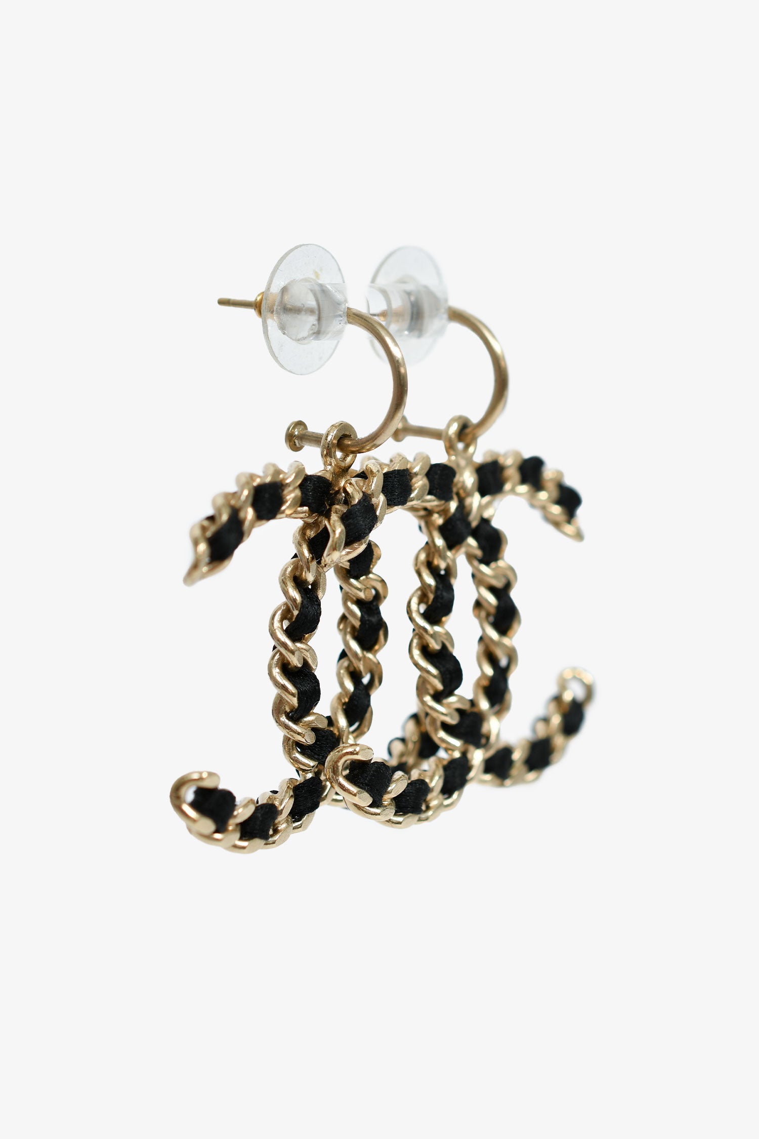 Pre-Loved Chanel™ Gold Toned Black Woven CC Drop Earrings