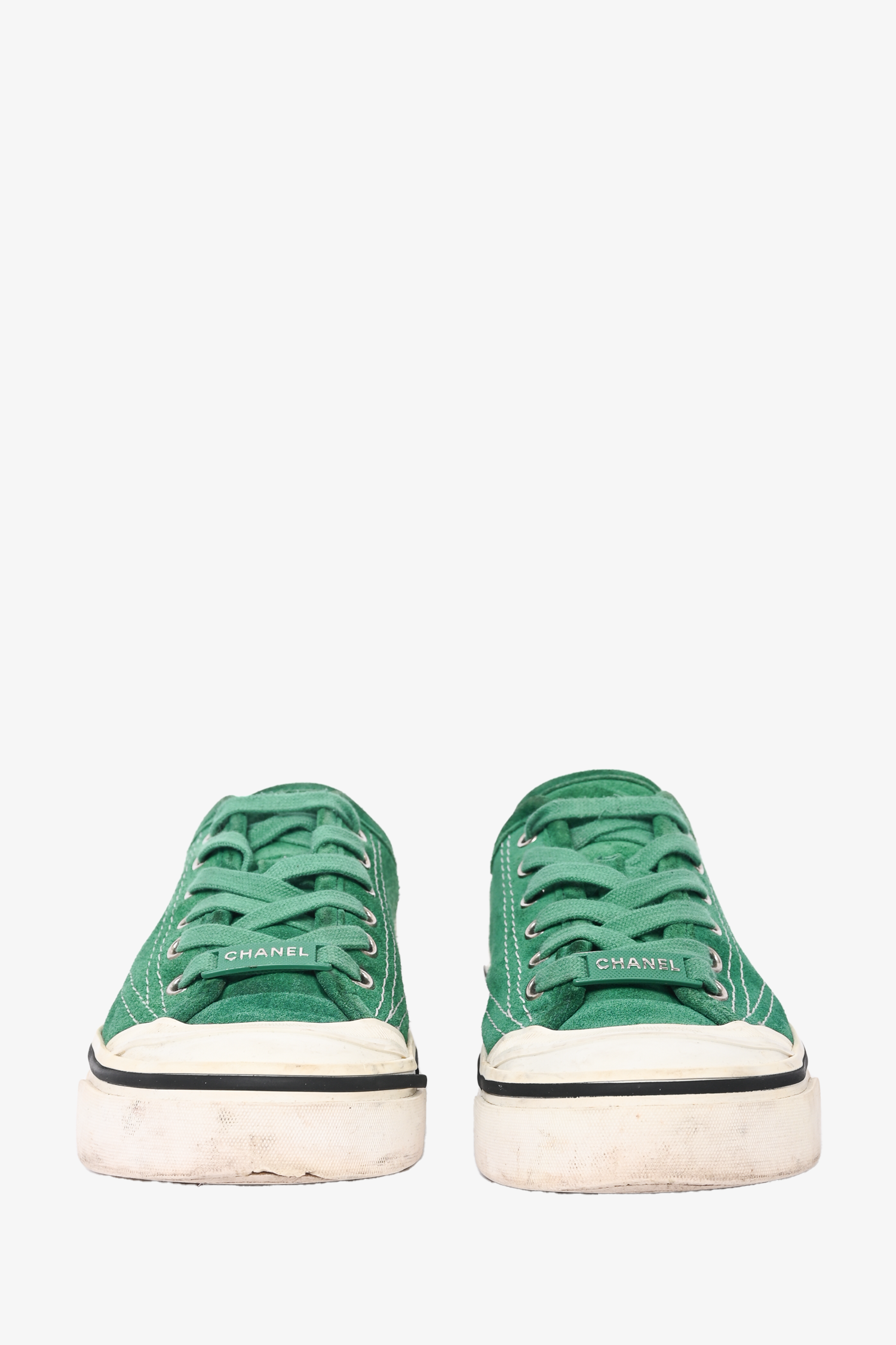 Pre-Loved Chanel™ Green Suede Low Top Sneakers Size 36