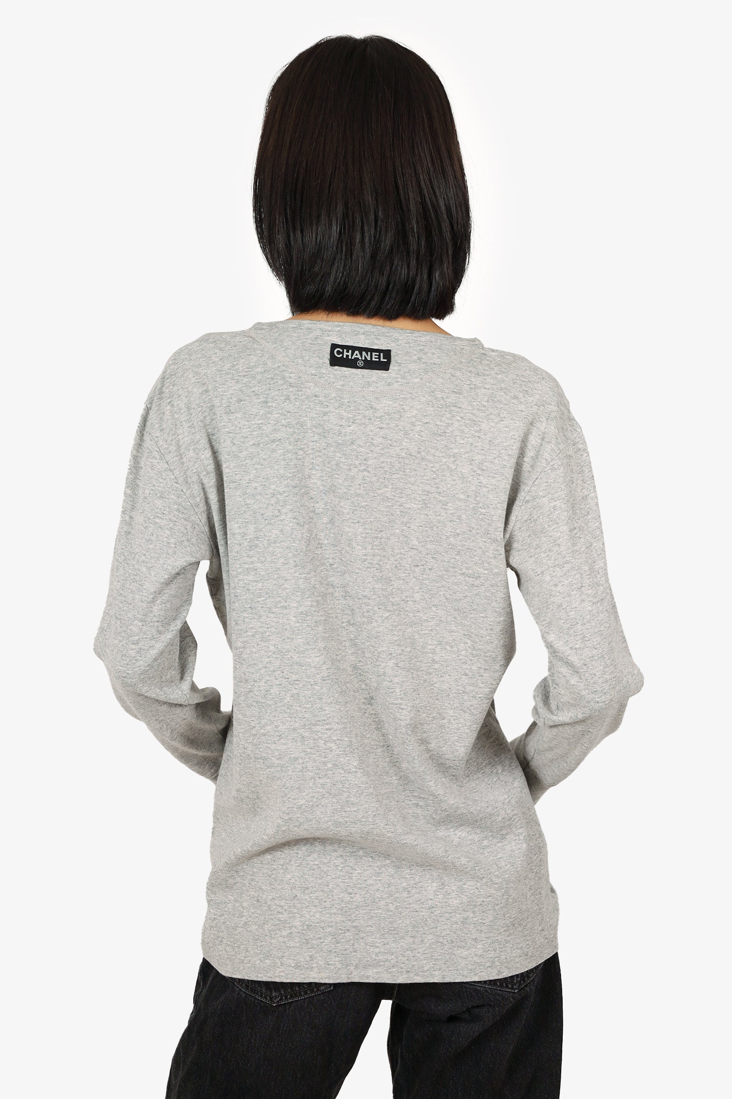 Pre-Loved Chanel™ Grey Cotton Long Sleeve Buttons Sweater Estimated Size L