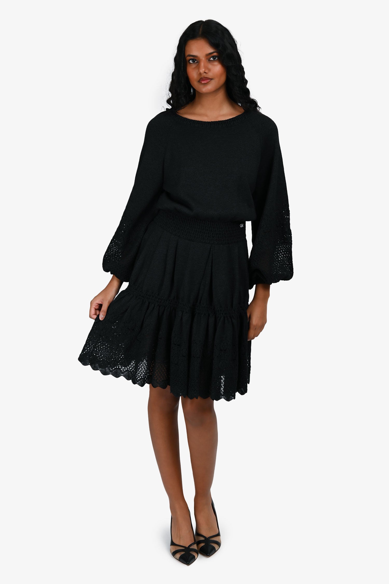 Pre-Loved Chanel™ Grey Knit Long Sleeve Midi Dress Size 36