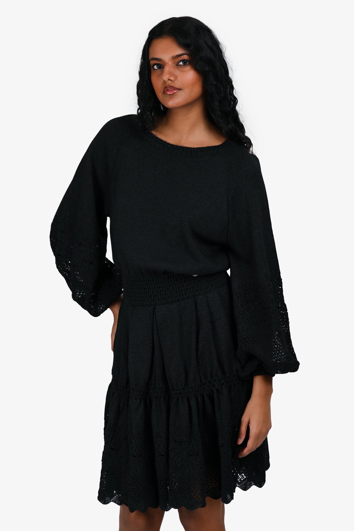 Refresh availabilityPre-Loved Chanel™ Grey Knit Long Sleeve Midi Dress. Slip-on. Round neckline. Elasticized cuffs and waistband. Unlined. Silver-tone hardware. Tonal stitching.
