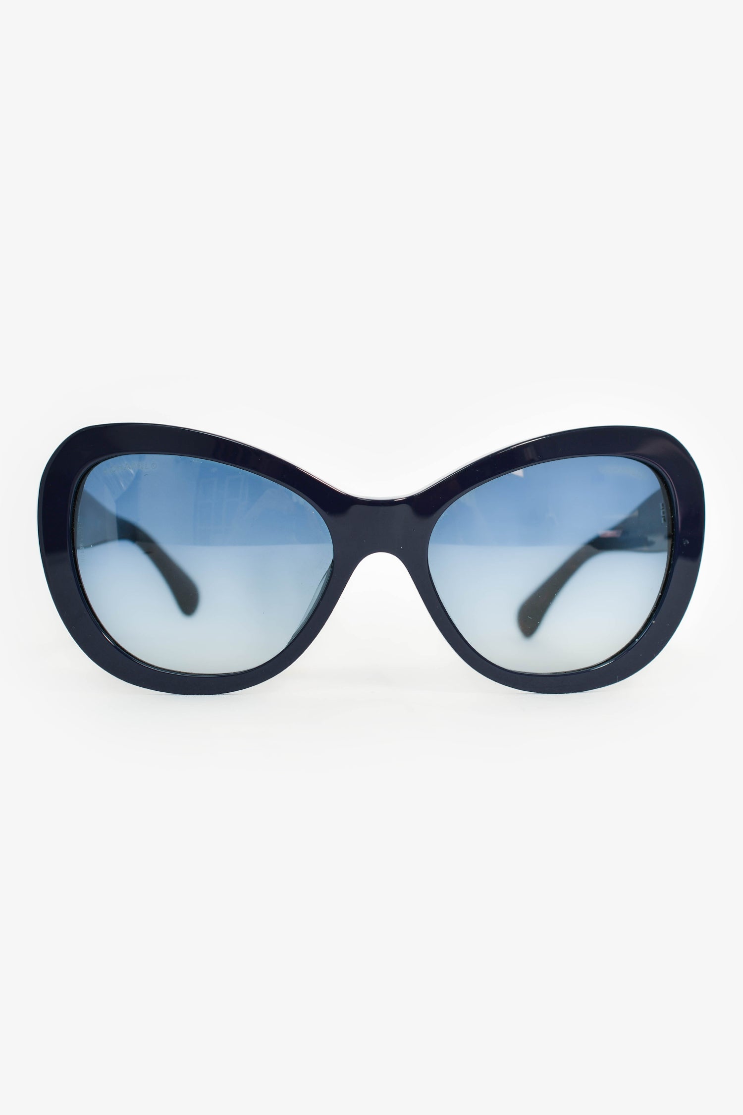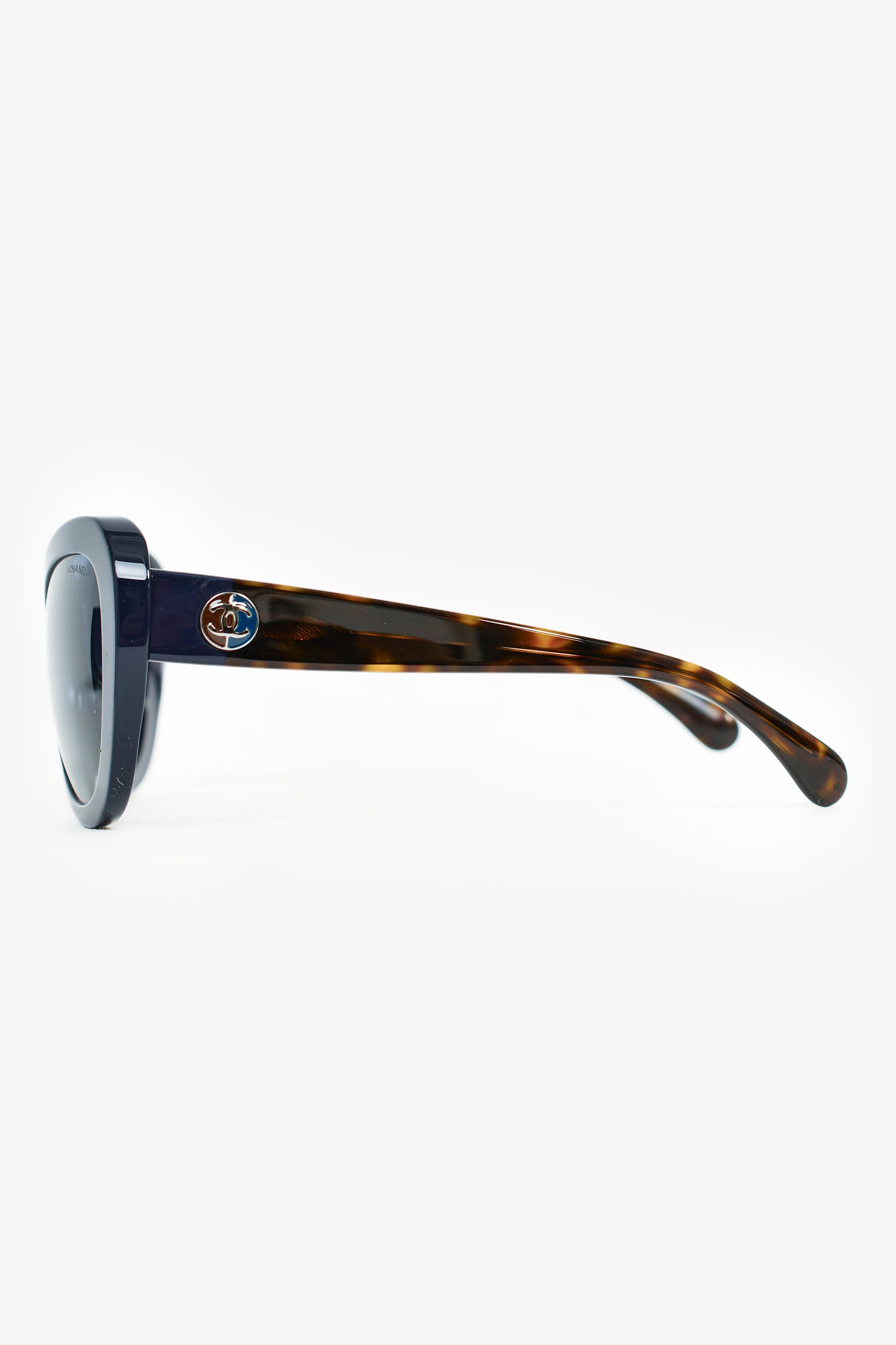 Pre-Loved Chanel™ Navy Blue/Brown Tortoiseshell Oversized Sunglasses