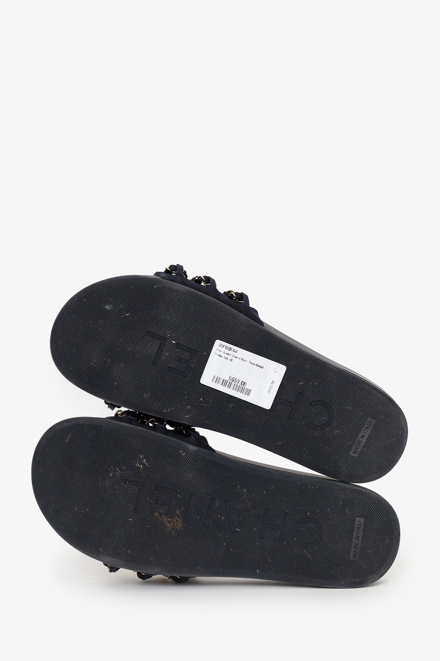 Pre-Loved Chanel™ Navy Chain Detail Slides Size 40