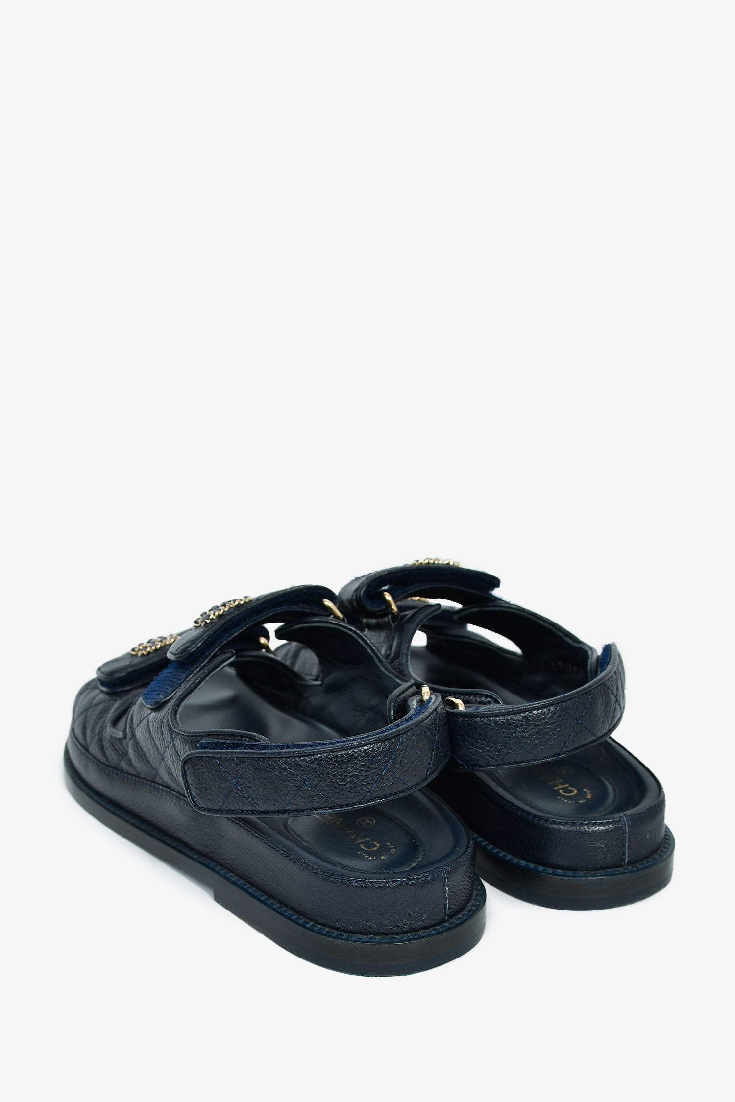 Pre-Loved Chanel™ Navy Leather Chain CC Sandals Size 37