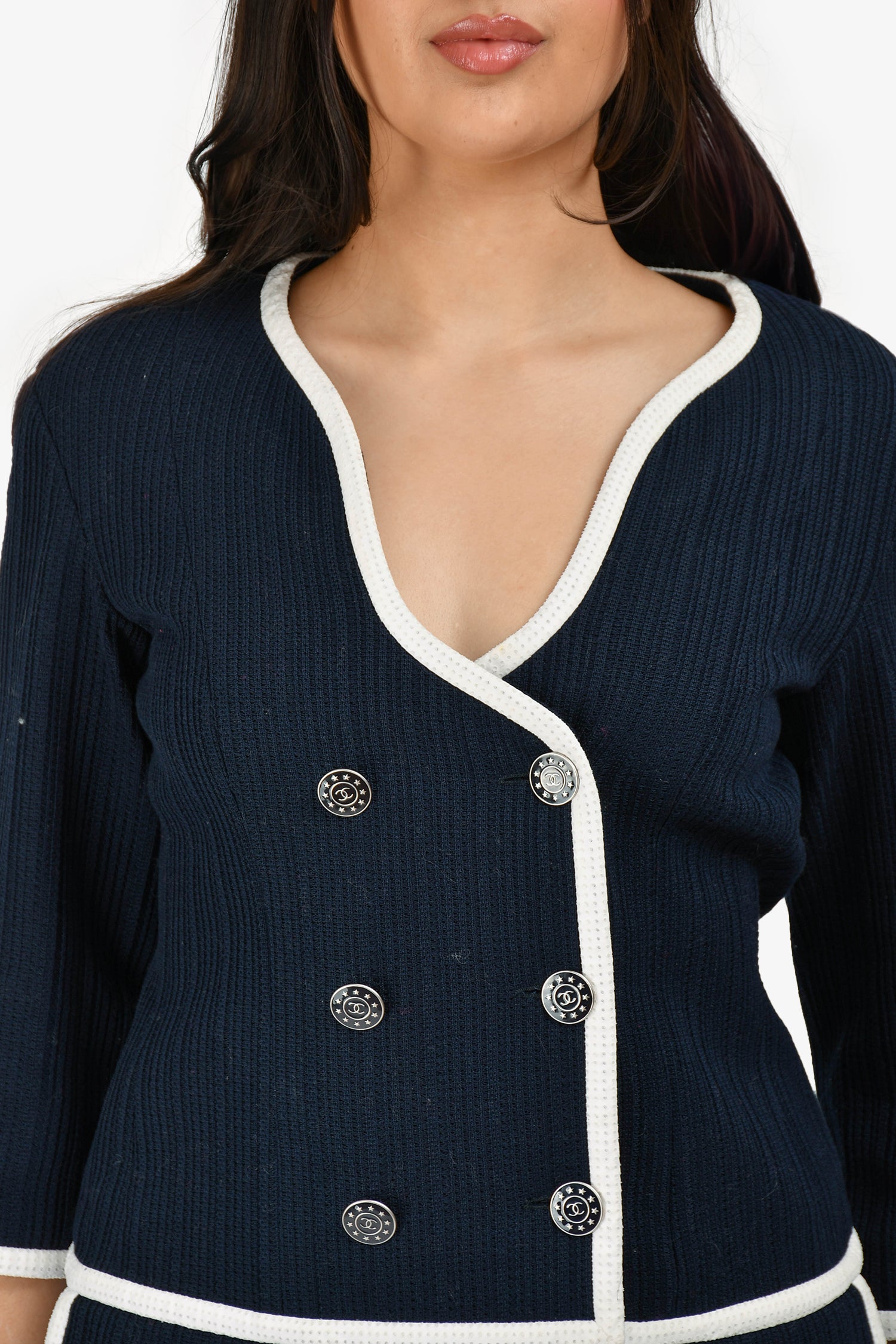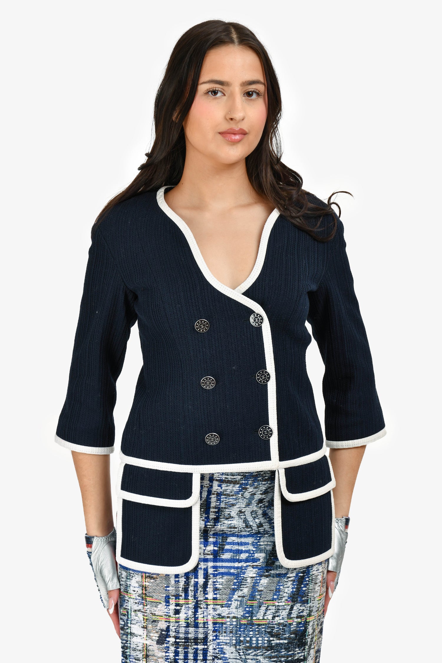 Pre-Loved Chanel™ Navy/White Textured Cotton Jacket Size 40