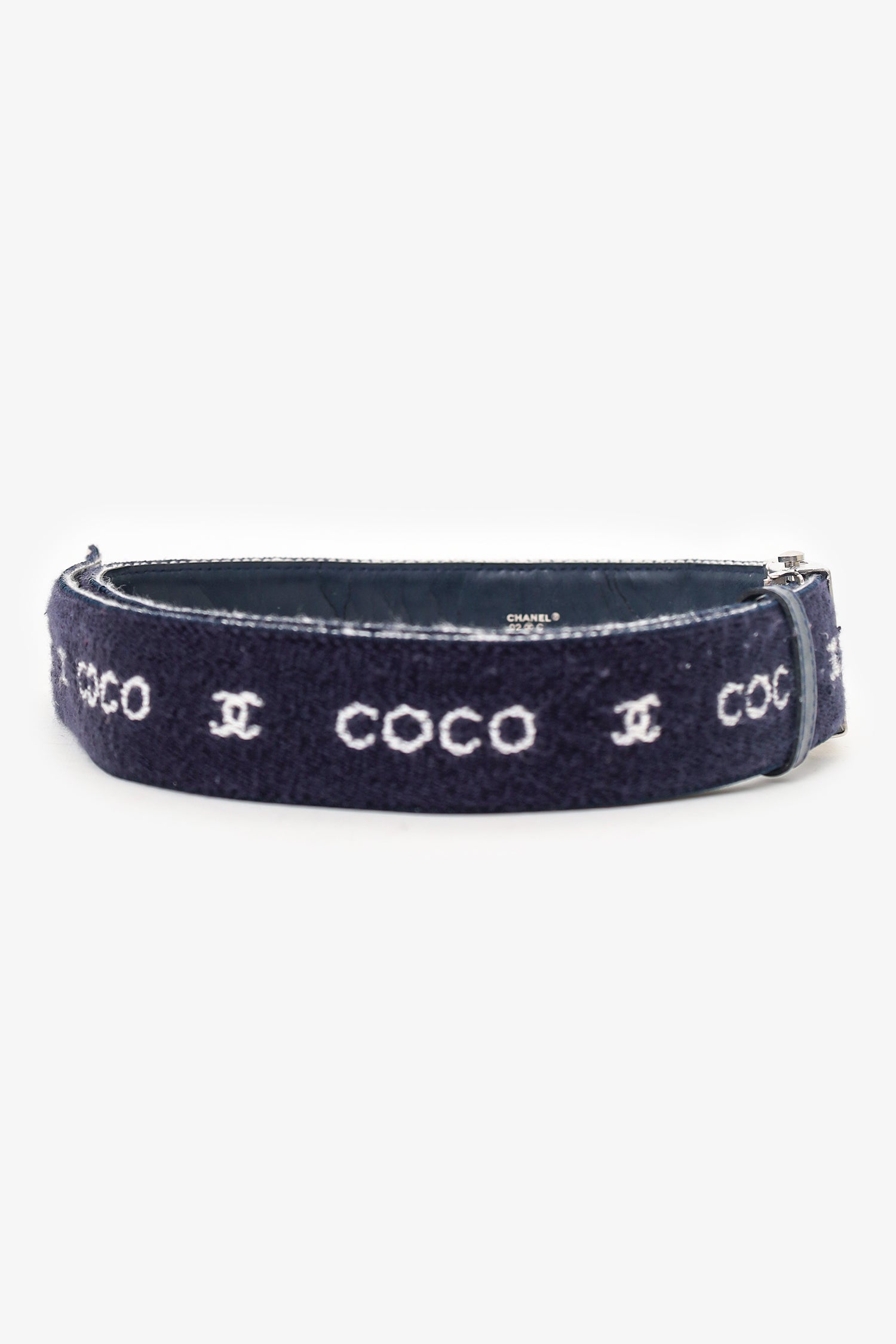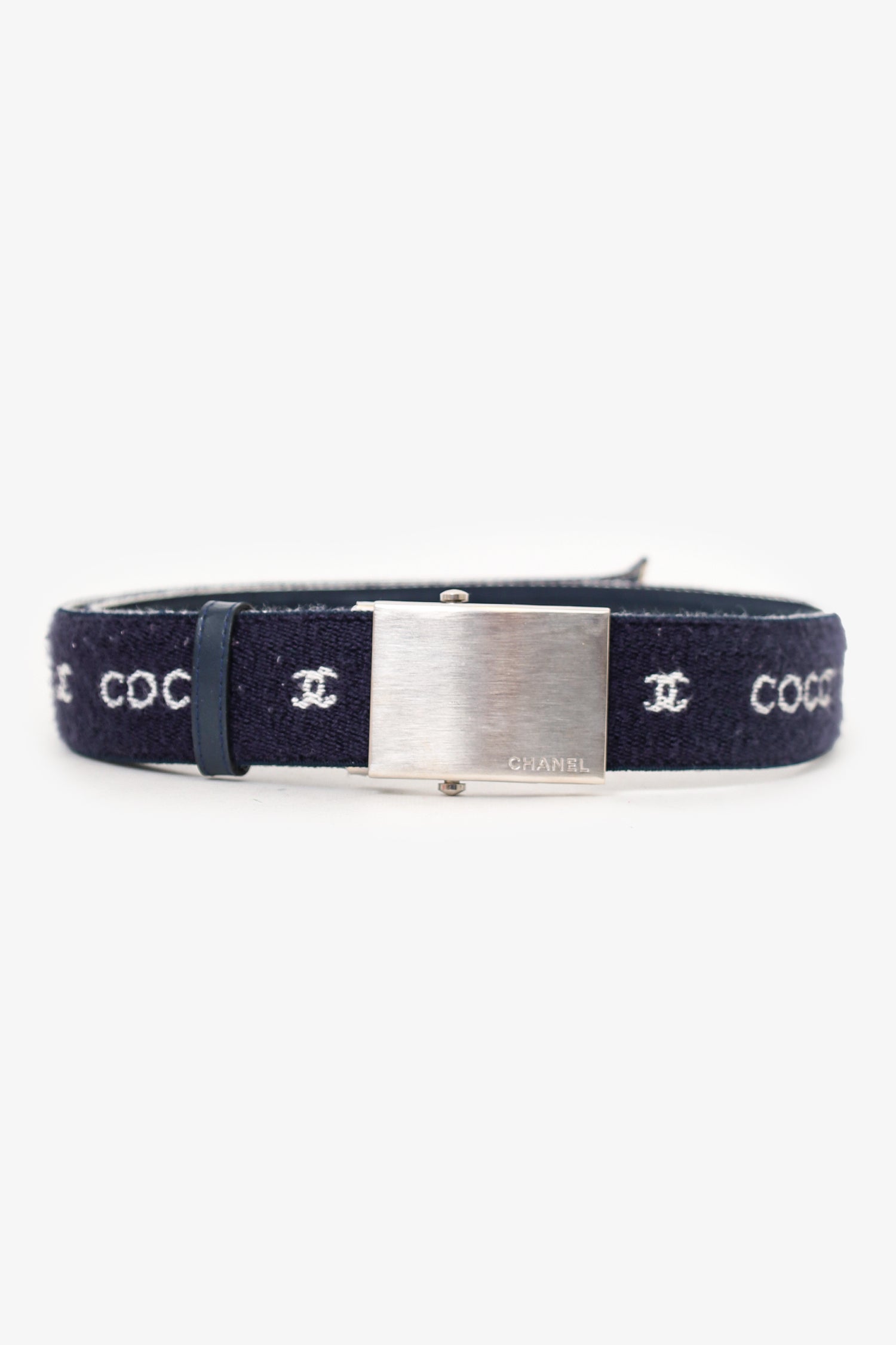 Refresh availabilityPre-Loved Chanel™ Navy Wool 'Coco CC' Belt. Adjustable pull-through buckle closure. Tonal stitching. Silver-tone hardware.