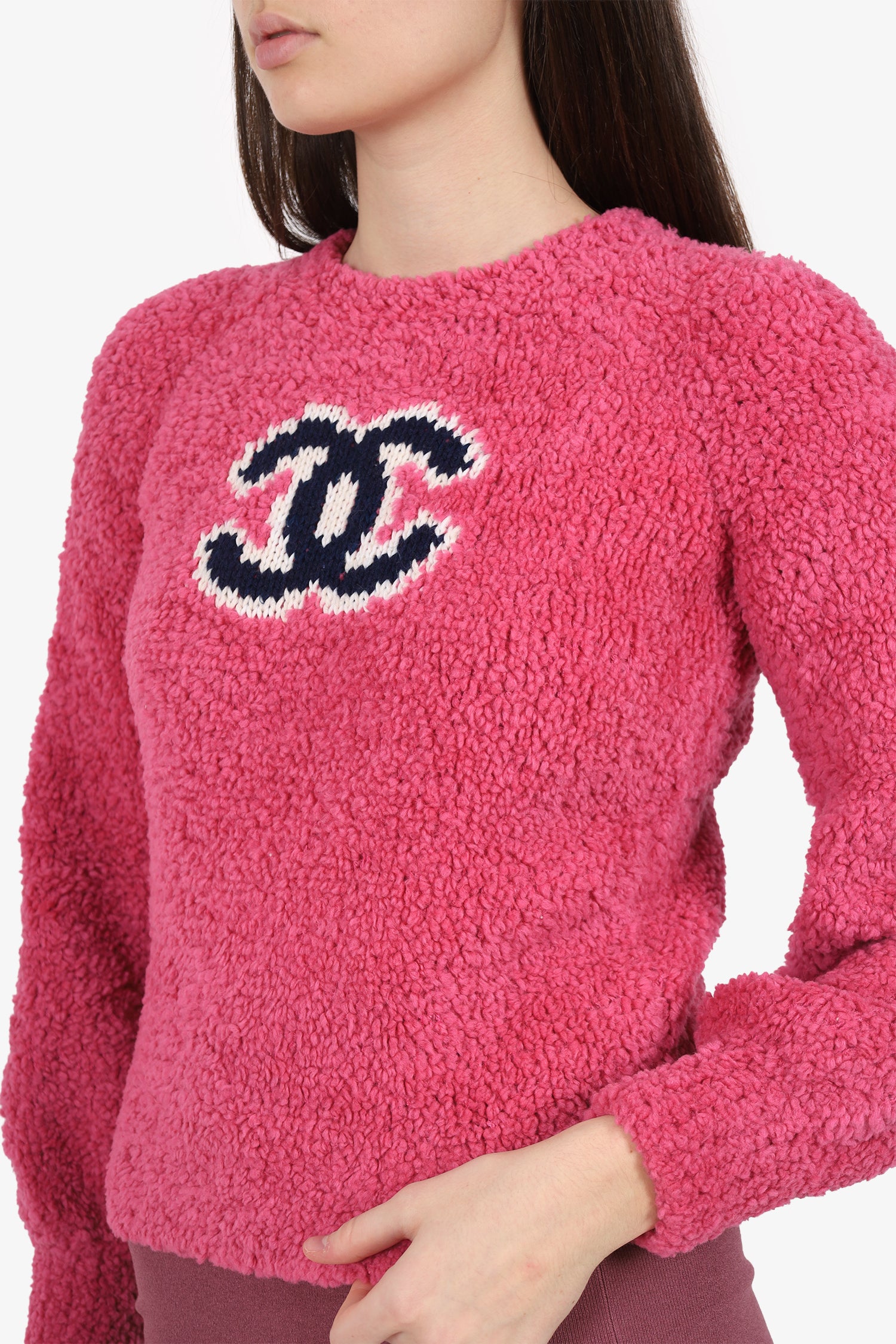 Refresh availabilityPre-Loved Chanel™ Pink Wool 'CC' Sweater. Pull-on. Round neckline. Elasticated sleeve cuffs. Contrast and tonal stitching.