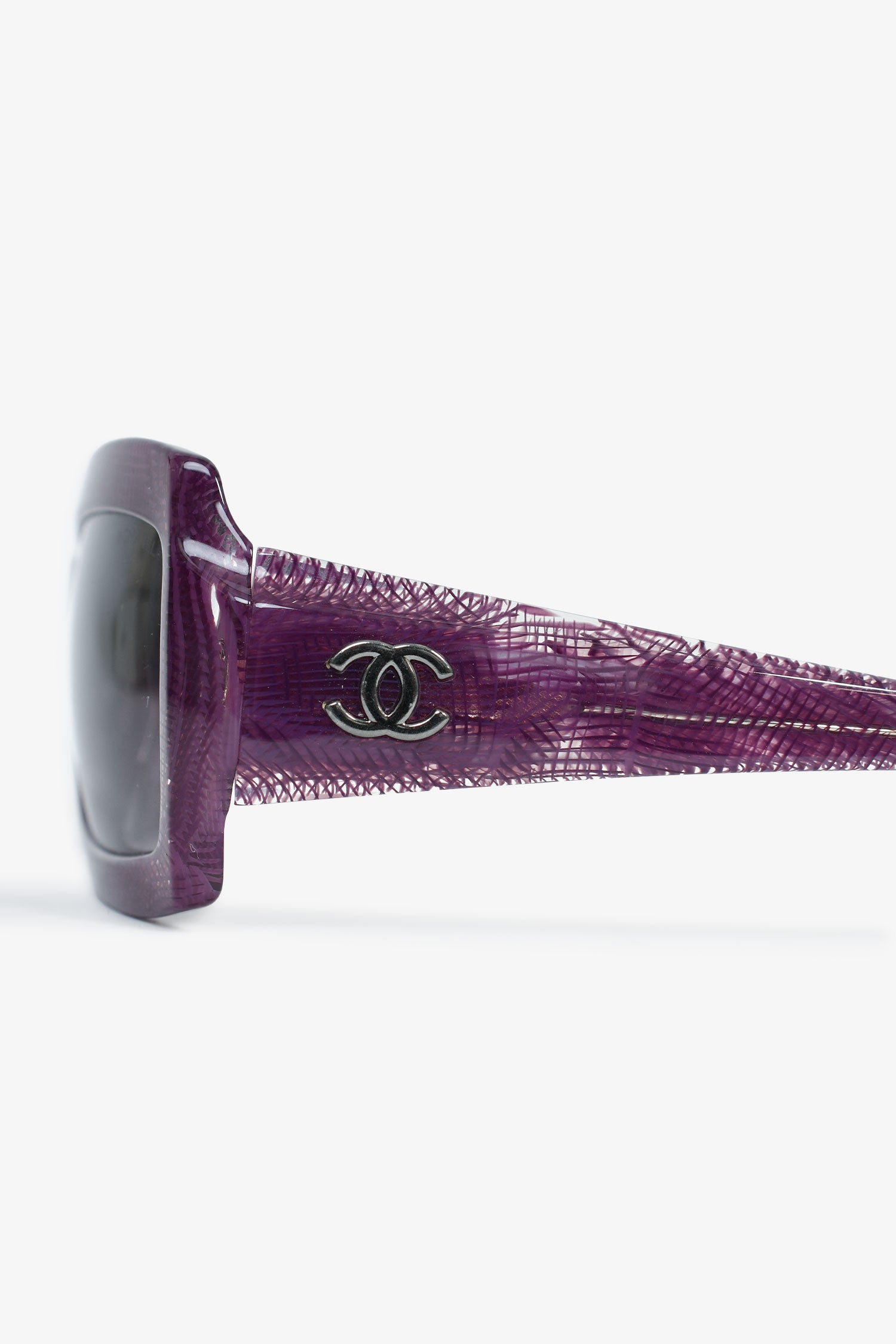 Pre-Loved Chanel™ Purple Rectangle Sunglasses. Gradient tinted lenses. Frame nose pads. Acetate frames.