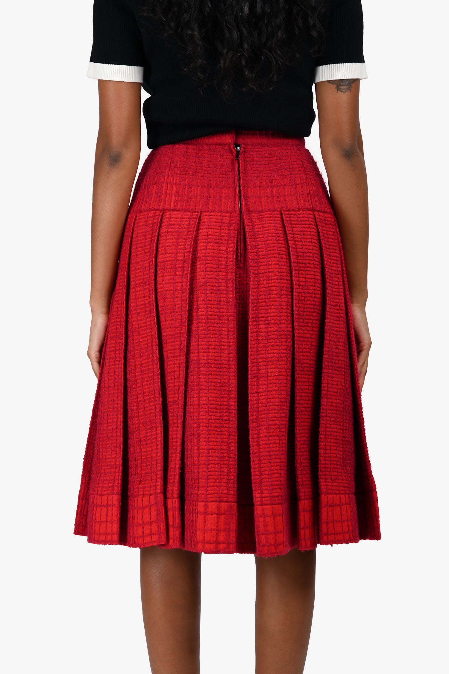 Pre-Loved Chanel™ Red Tweed Logo Pleated Mini Skirt Size 34