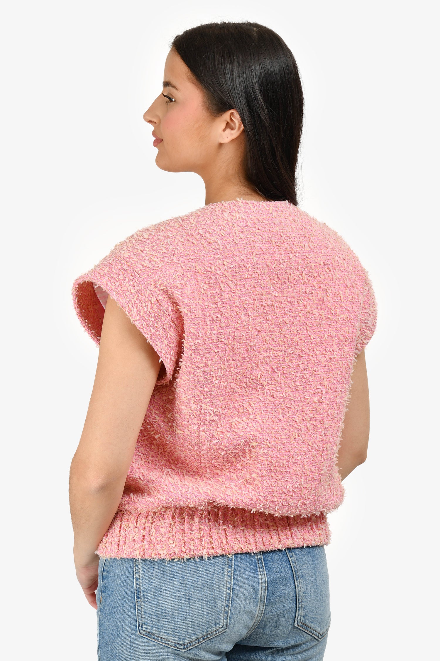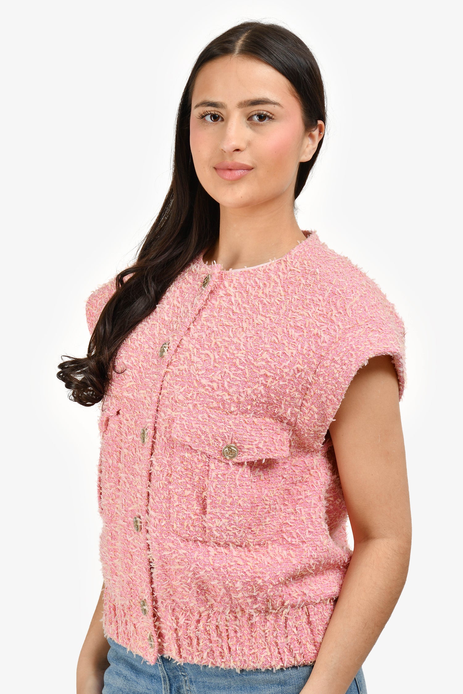 Pre-Loved Chanel™ Short Sleeve Runway 2021 Pink Fantasy Tweed Vest Size 38