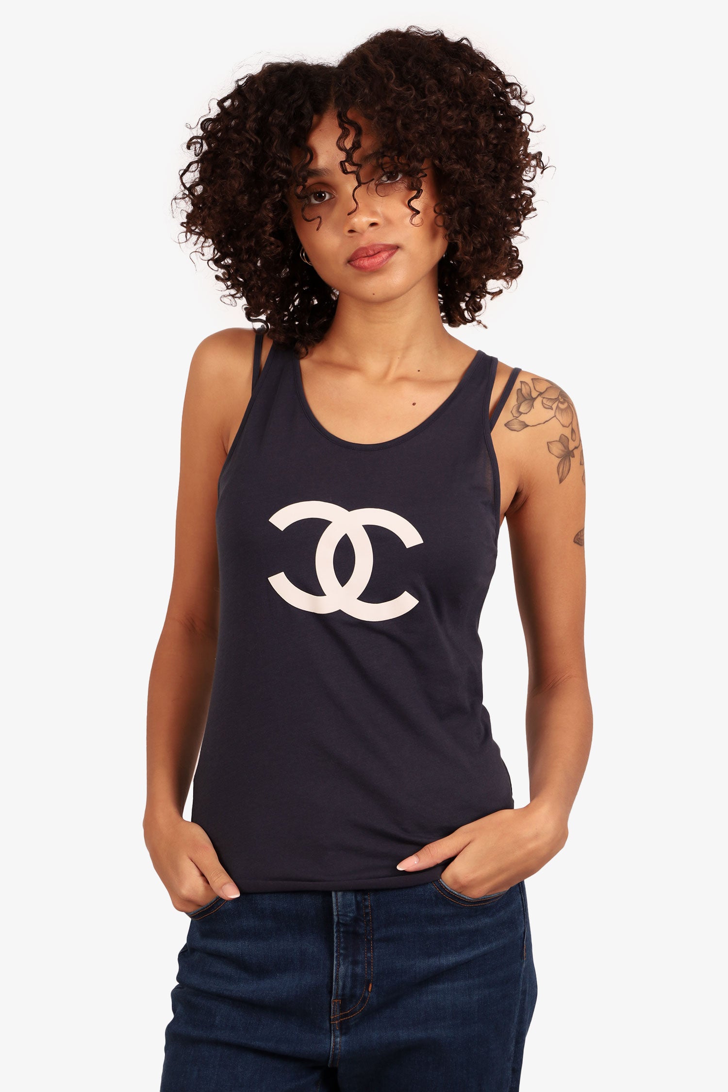 Refresh availabilityPre-loved Chanel™Sport Navy/White 'CC' Logo Sleeveless Top. Pull-on. Round neckline. Tonal stitching.