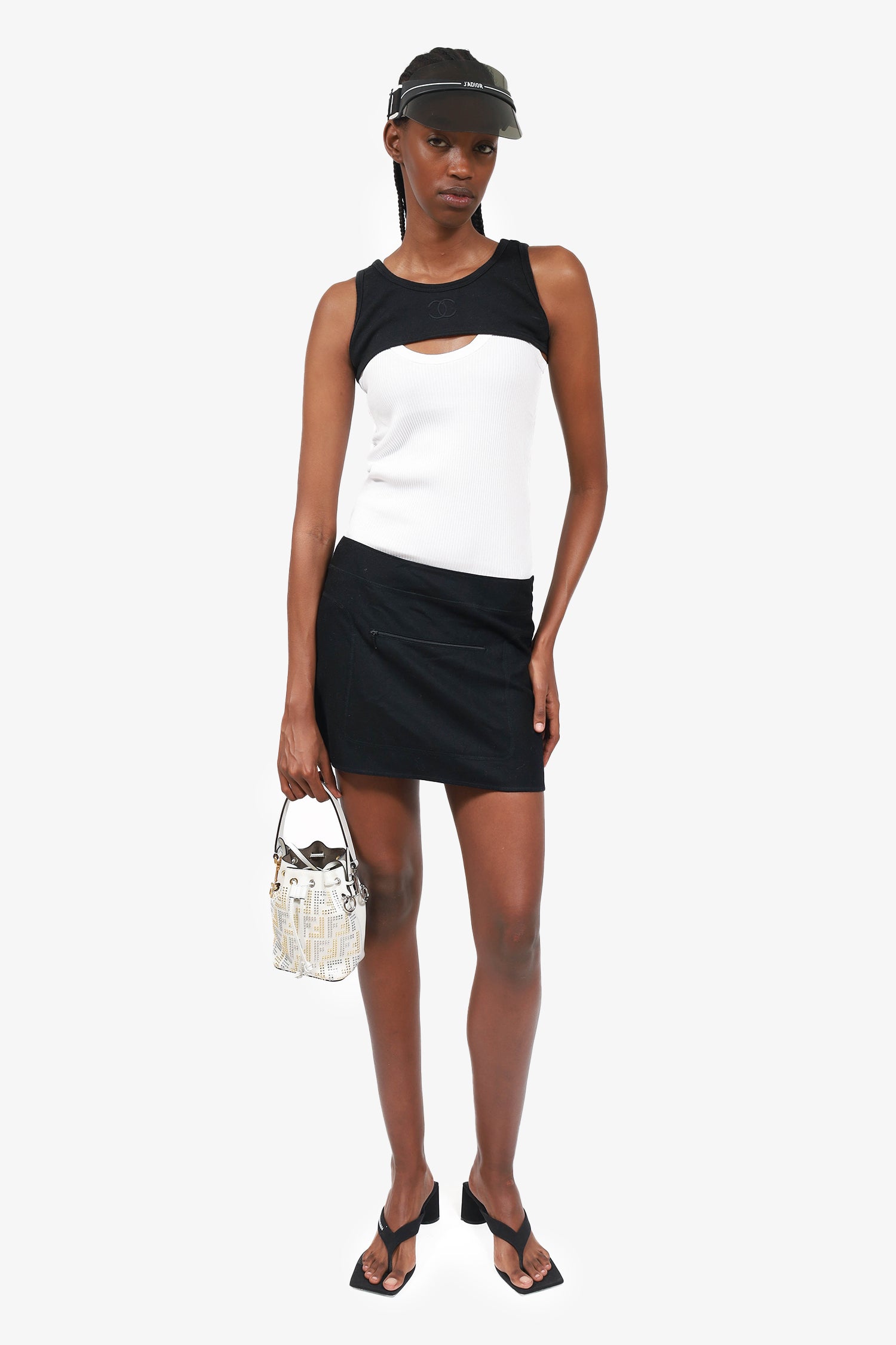 Pre-Loved Chanel™ Vintage Black Ribbed CC Logo Overlay Tank Top Size 38