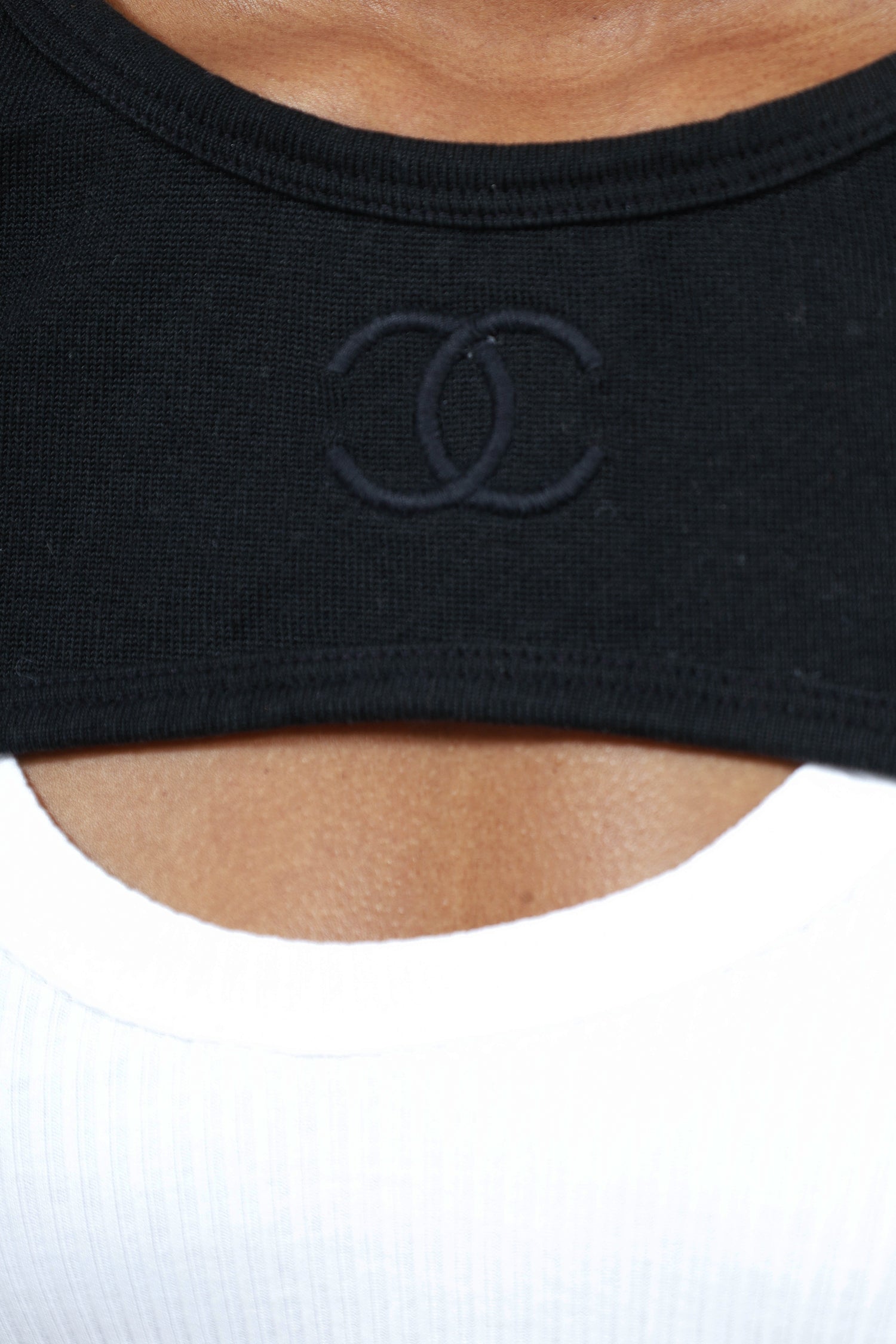 Refresh availabilityPre-Loved Chanel™ Vintage Black Ribbed CC Logo Overlay Tank Top. Pull on cropped black tank top. Tonal stitching. Unlined.
