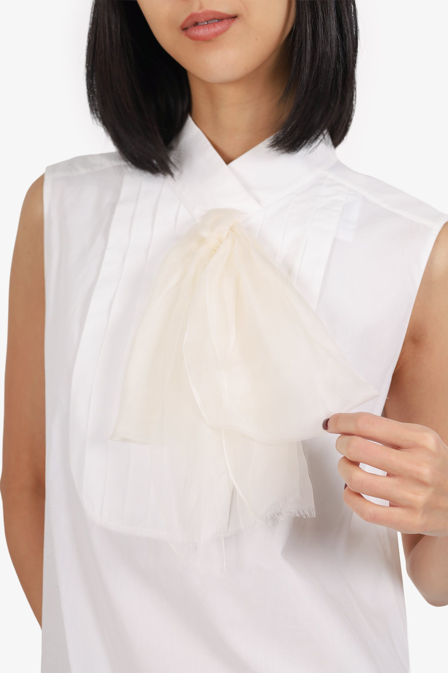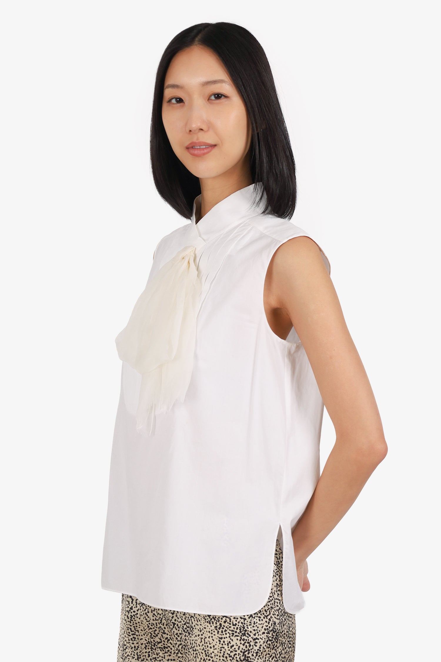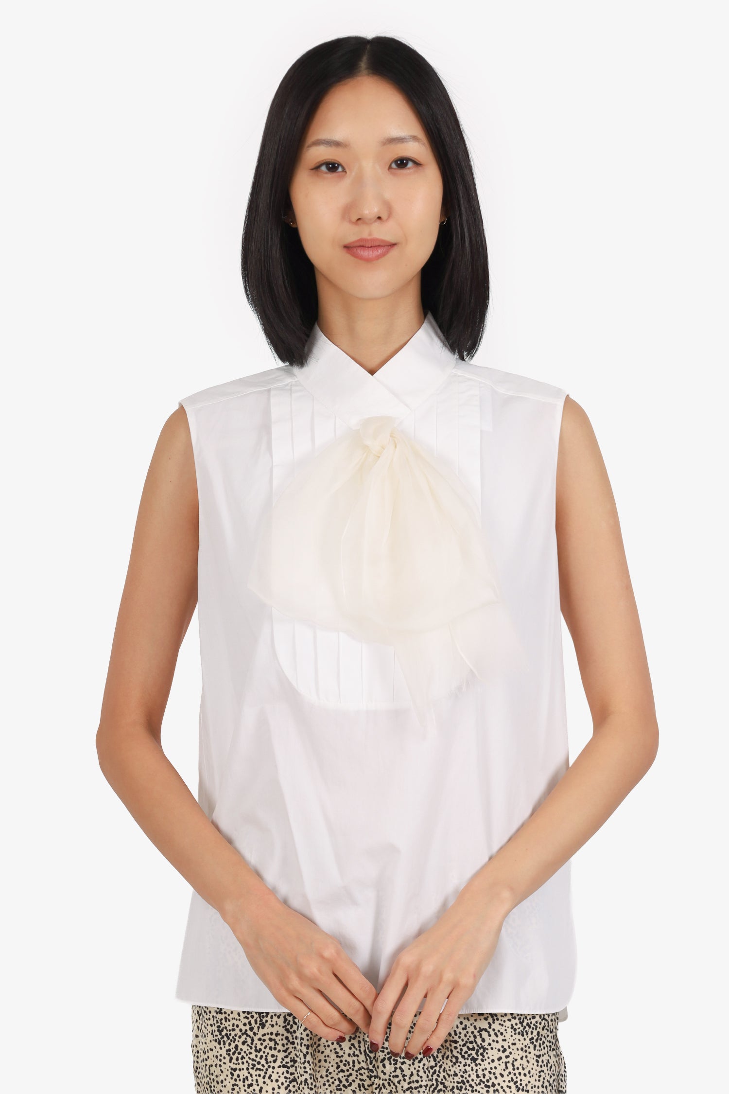 Refresh availabilityPre-Loved Chanel™ White Chiffon Bow Blouse. Pull-on. V-neckline Rear button-up closure. Tonal stitching.