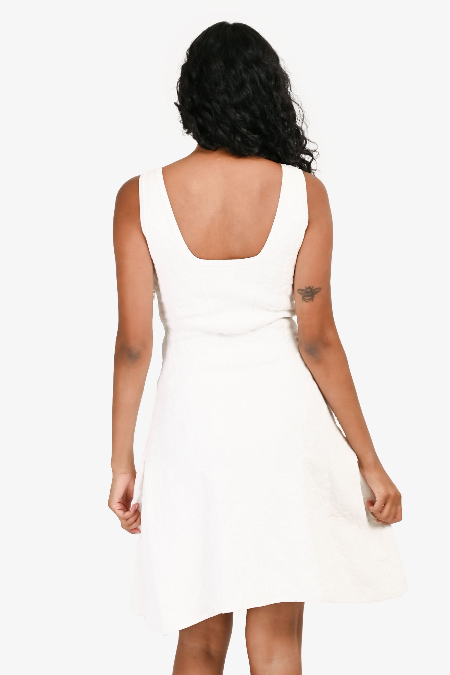 Refresh availabilityPre-Loved Chanel™ White Jacquard Knit Sleeveless Dress. Scoop neckline. Hidden side YKK zip closure. Tonal stitching.