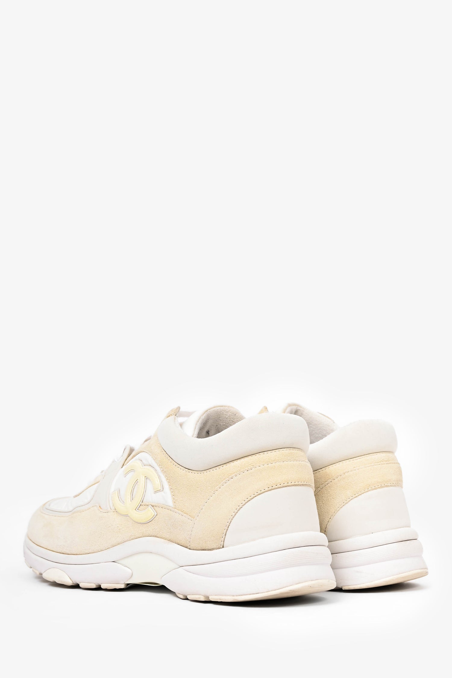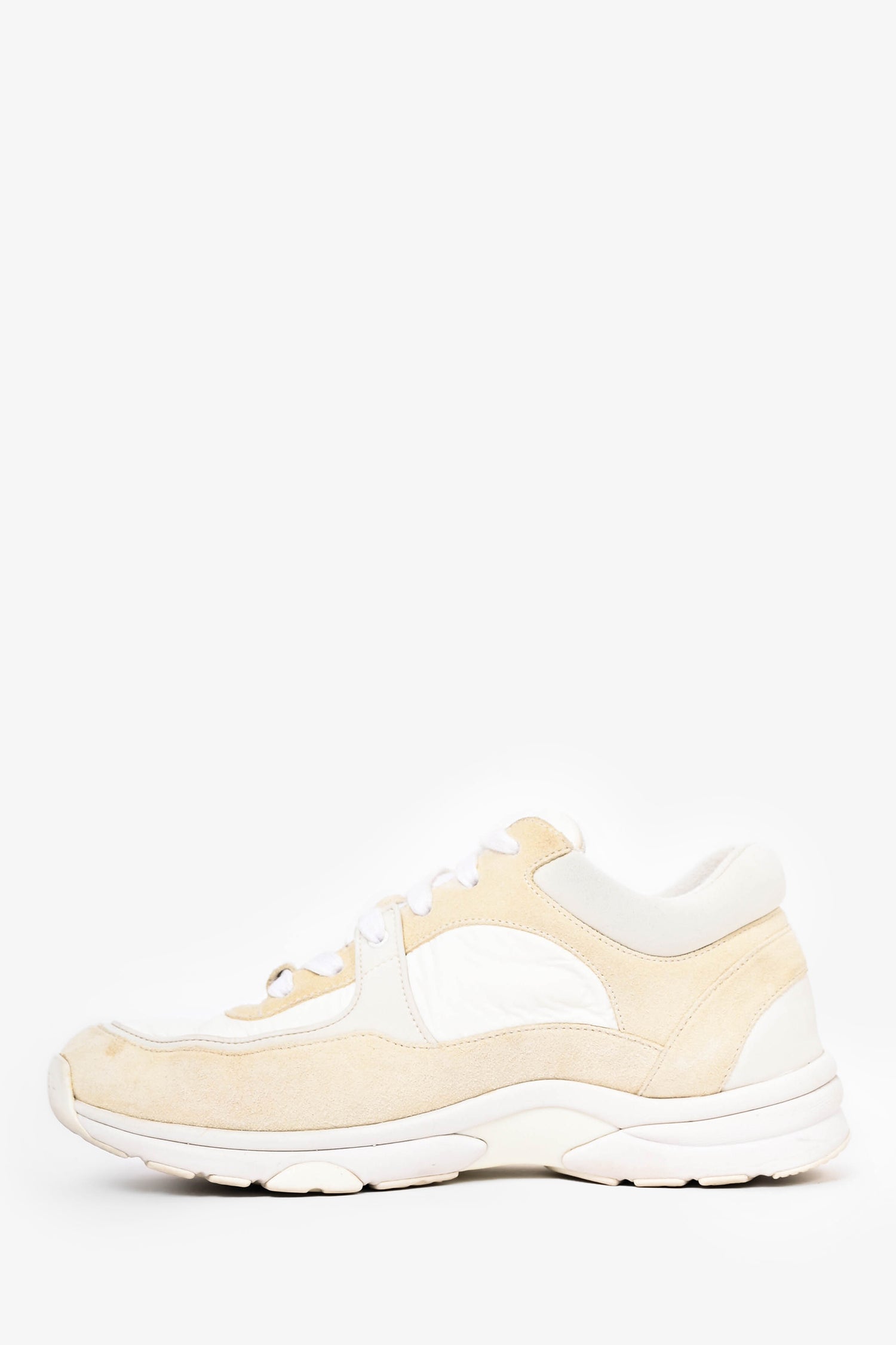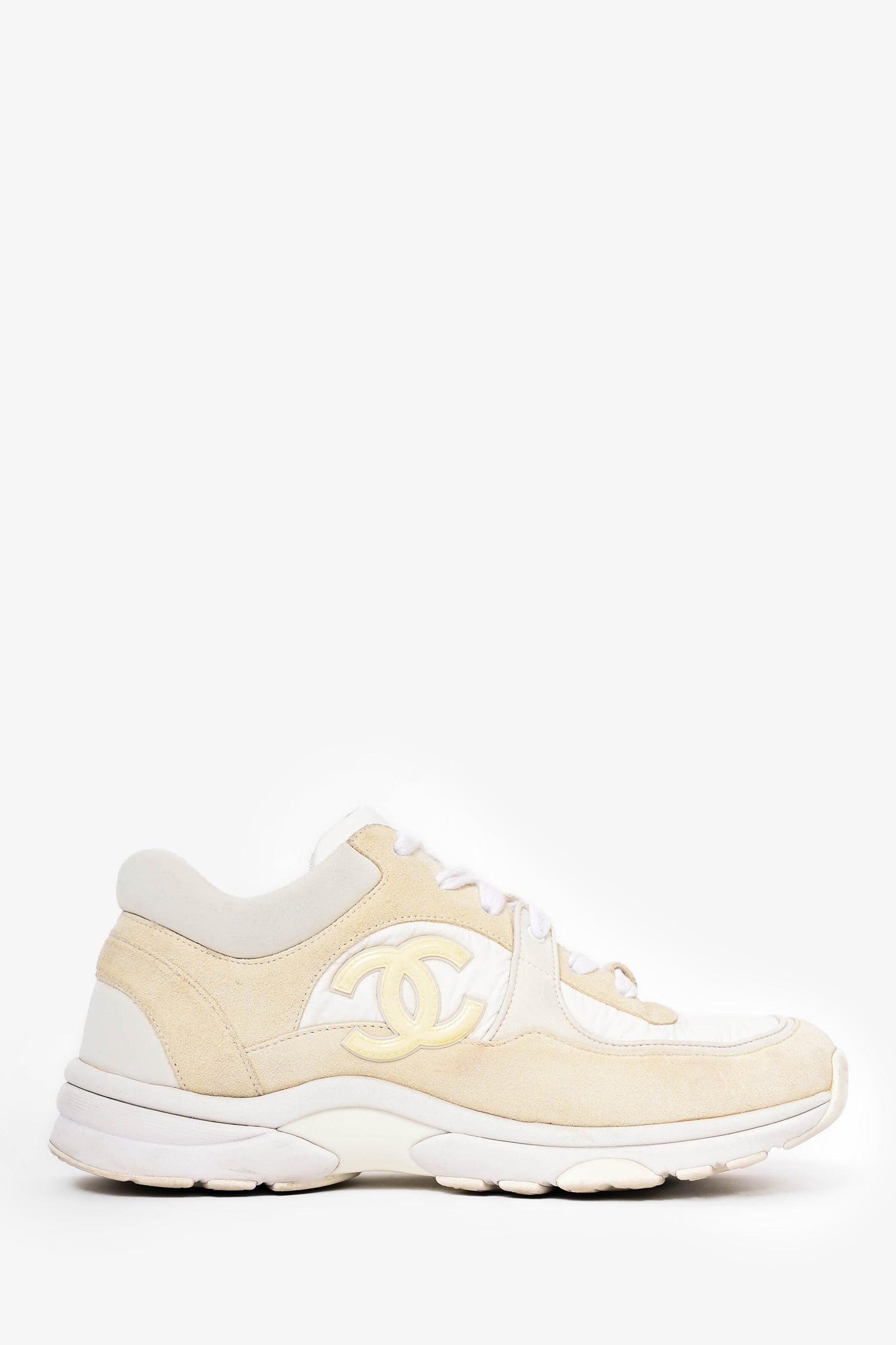 Pre-Loved Chanel™ White Nylon/Cream Suede CC Runners Size 38.5 (As Is)