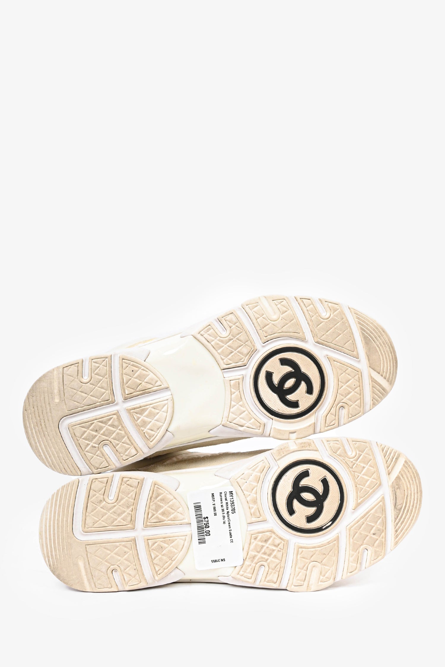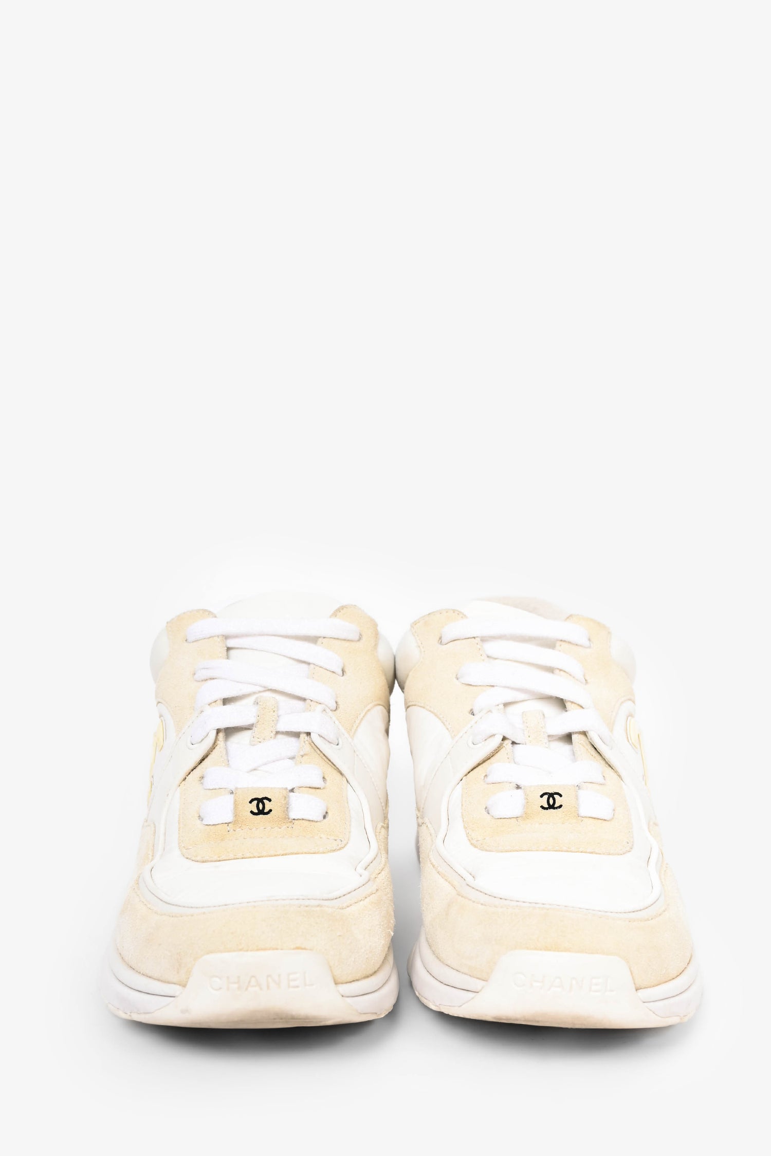 Refresh availabilityPre-Loved Chanel™ White Nylon/Cream Suede CC Runners. Round toe.