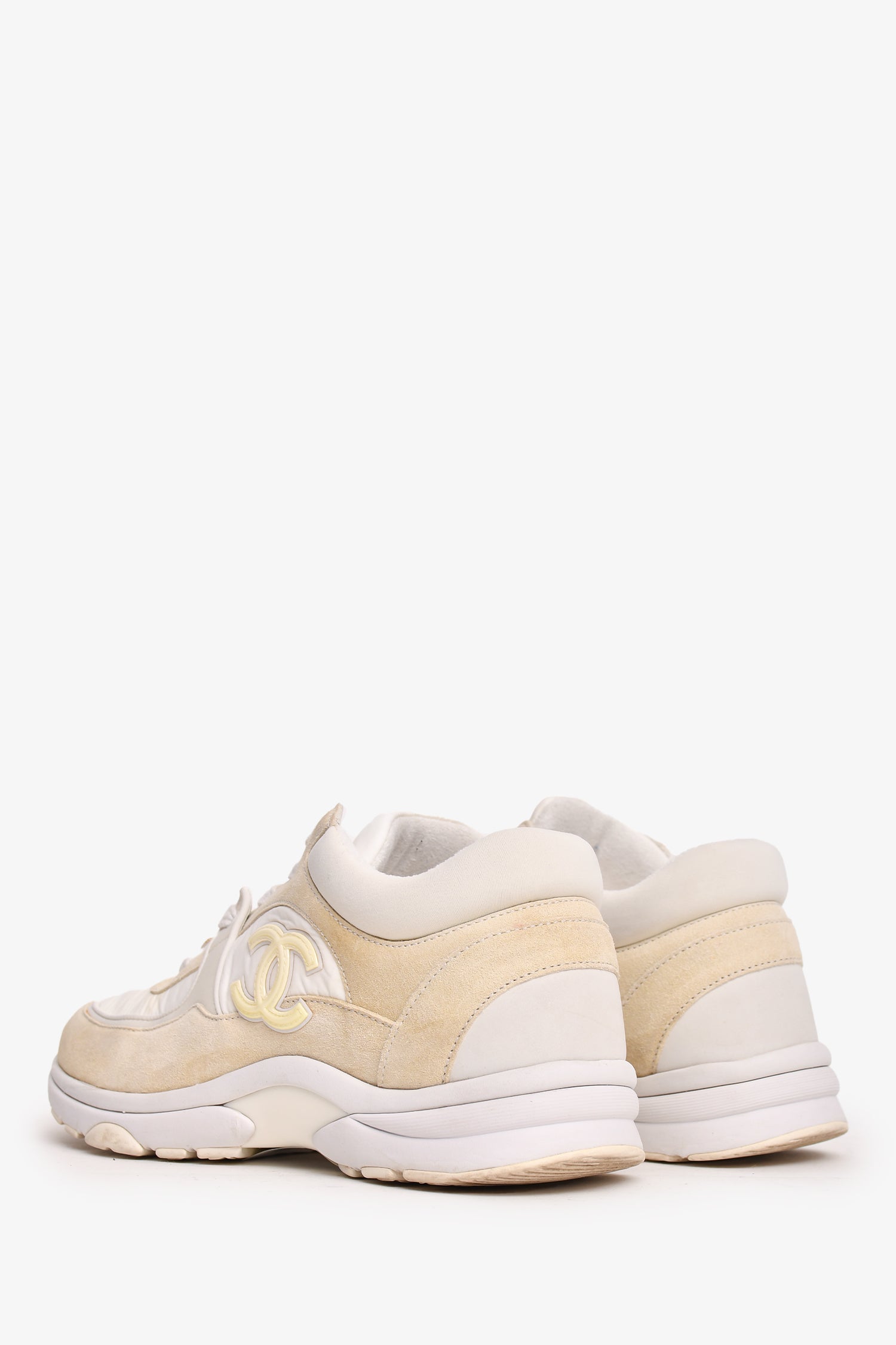 Pre-Loved Chanel™ White Suede/Leather CC Sneakers Size 36