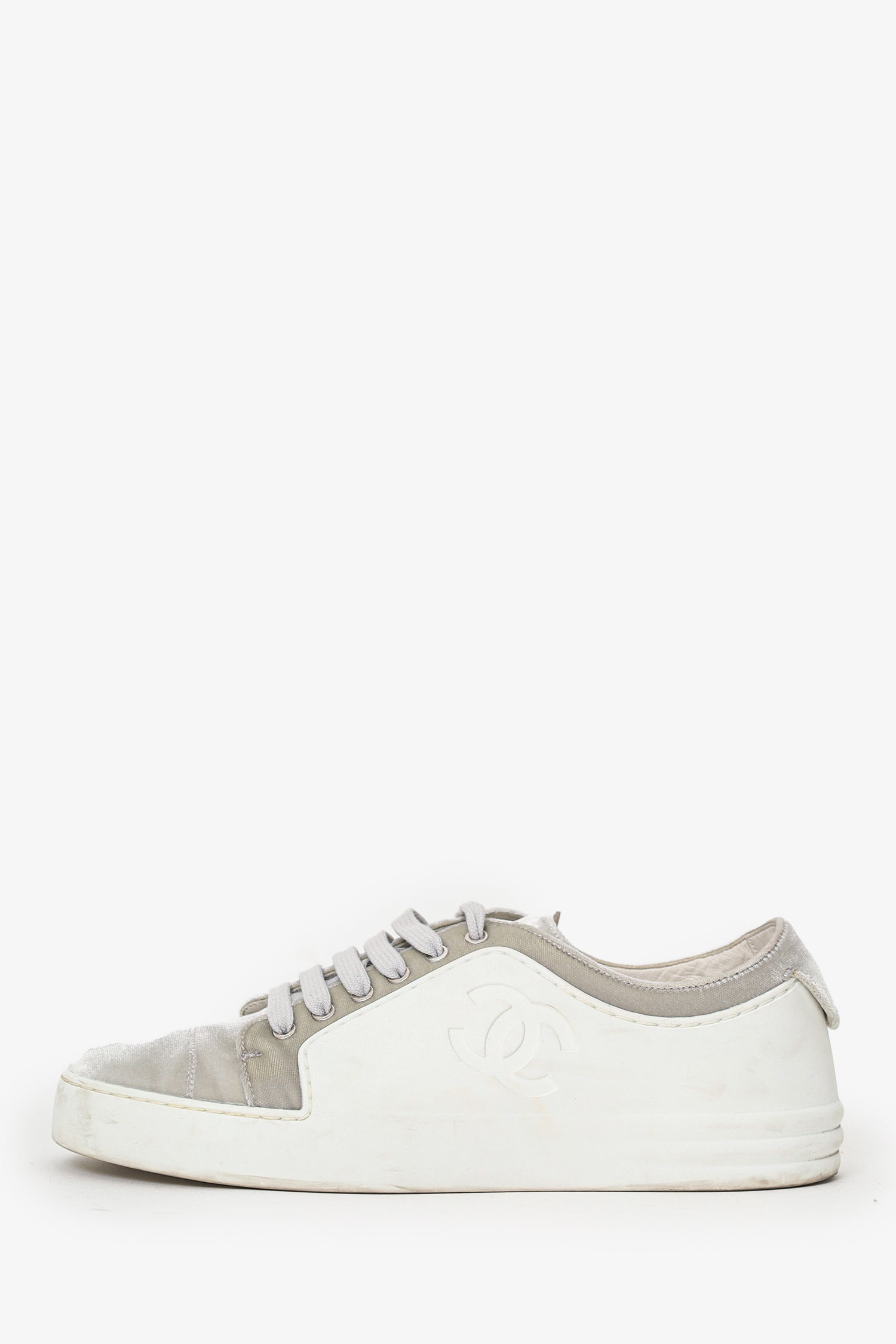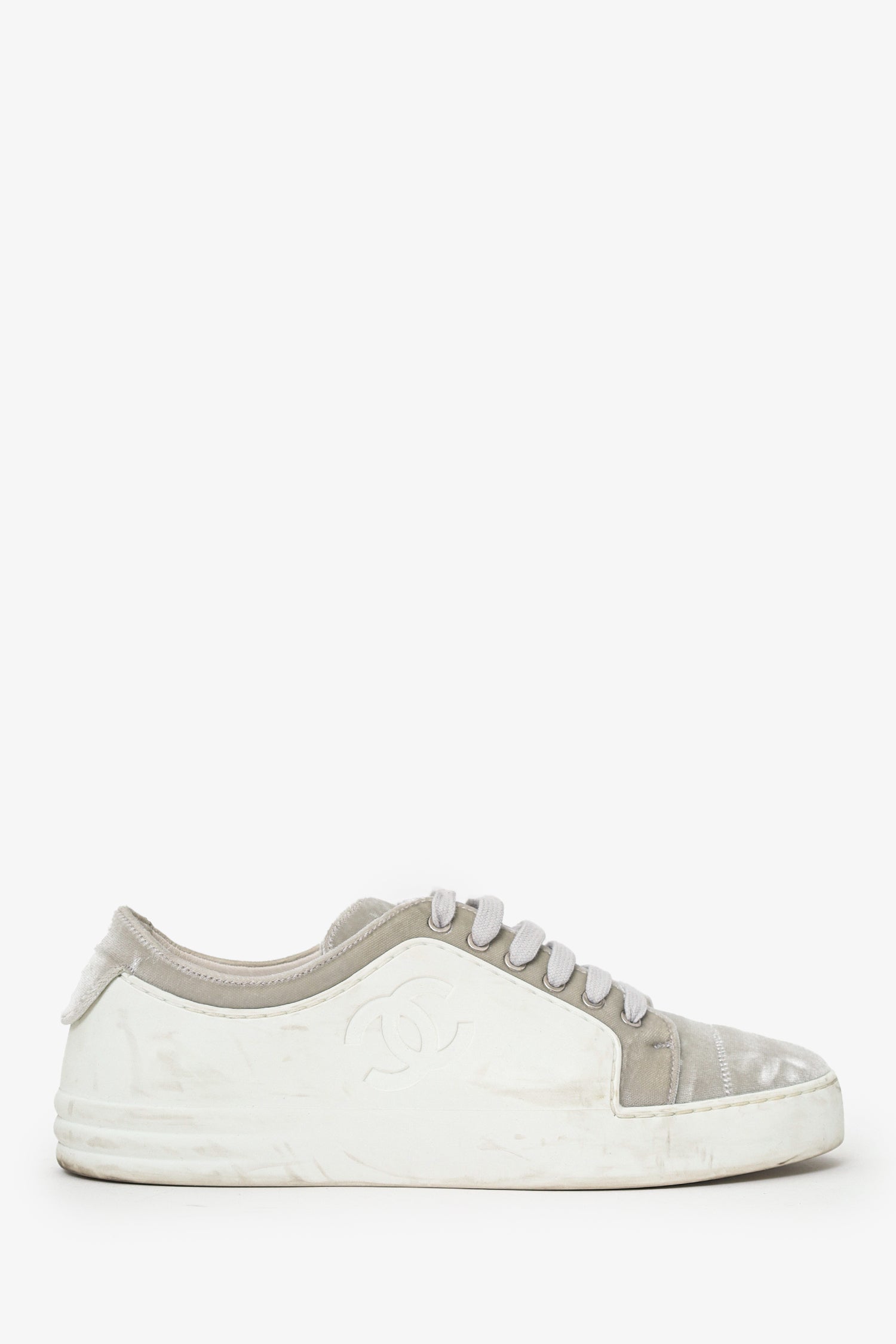 Pre-Loved Chanel™ White Velvet Calfskin CC Sneakers Size 38