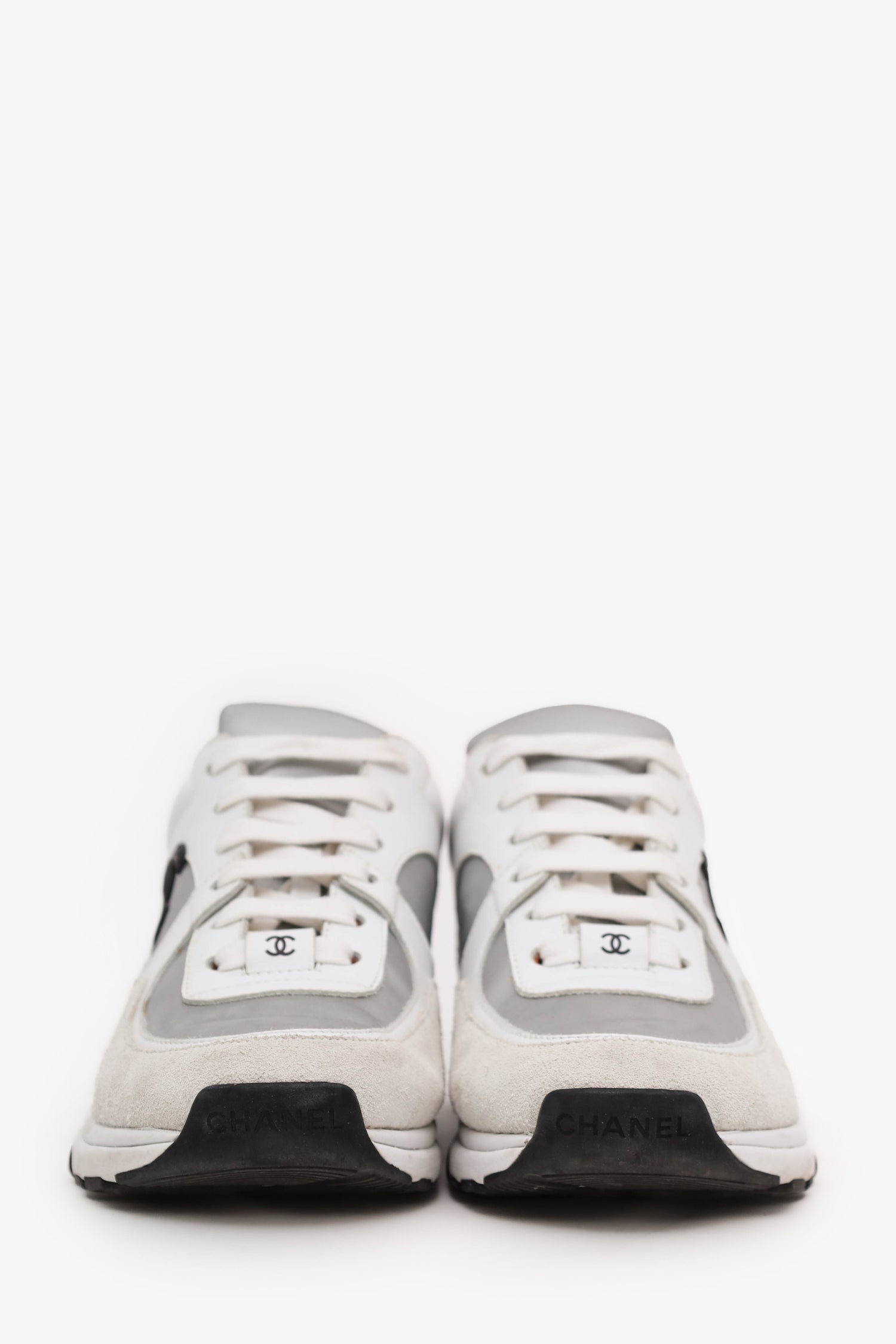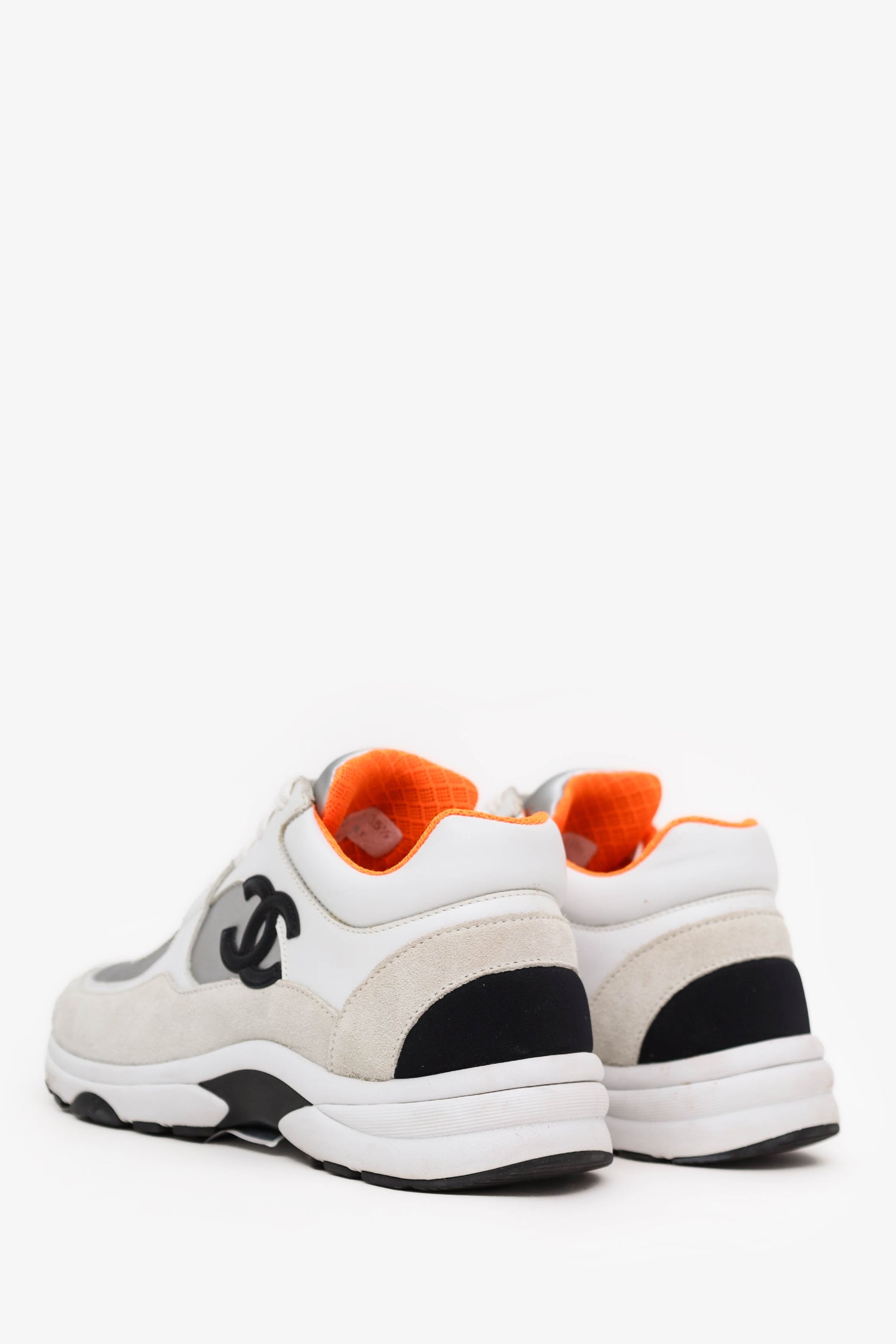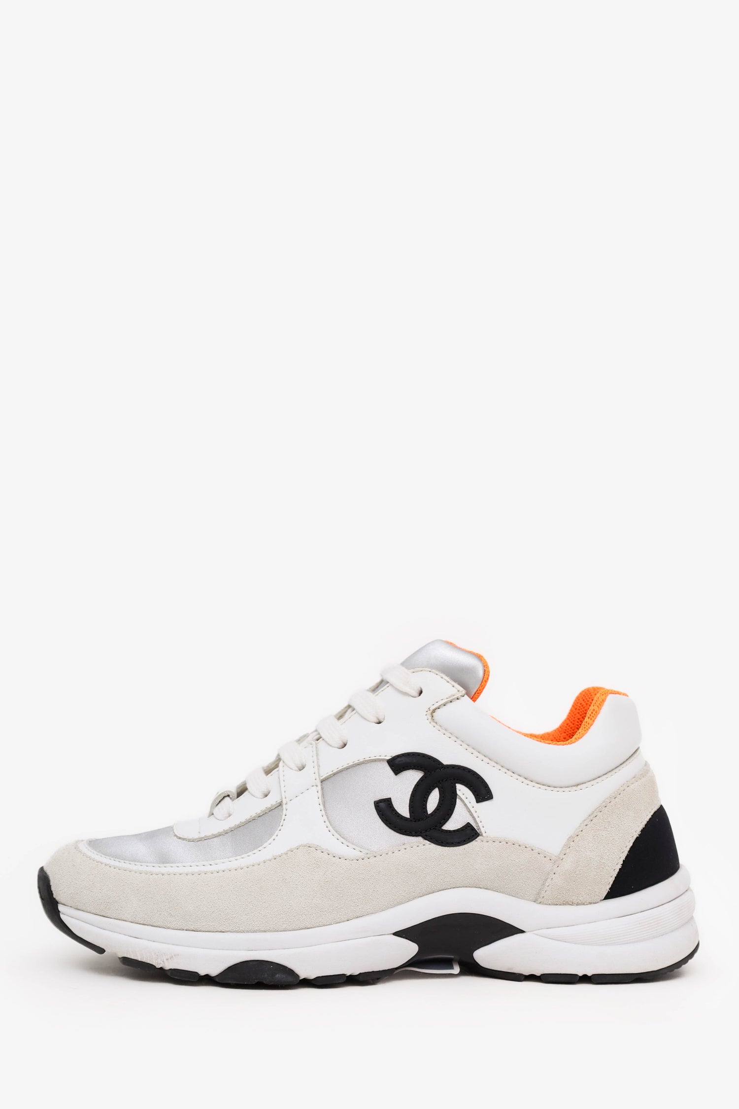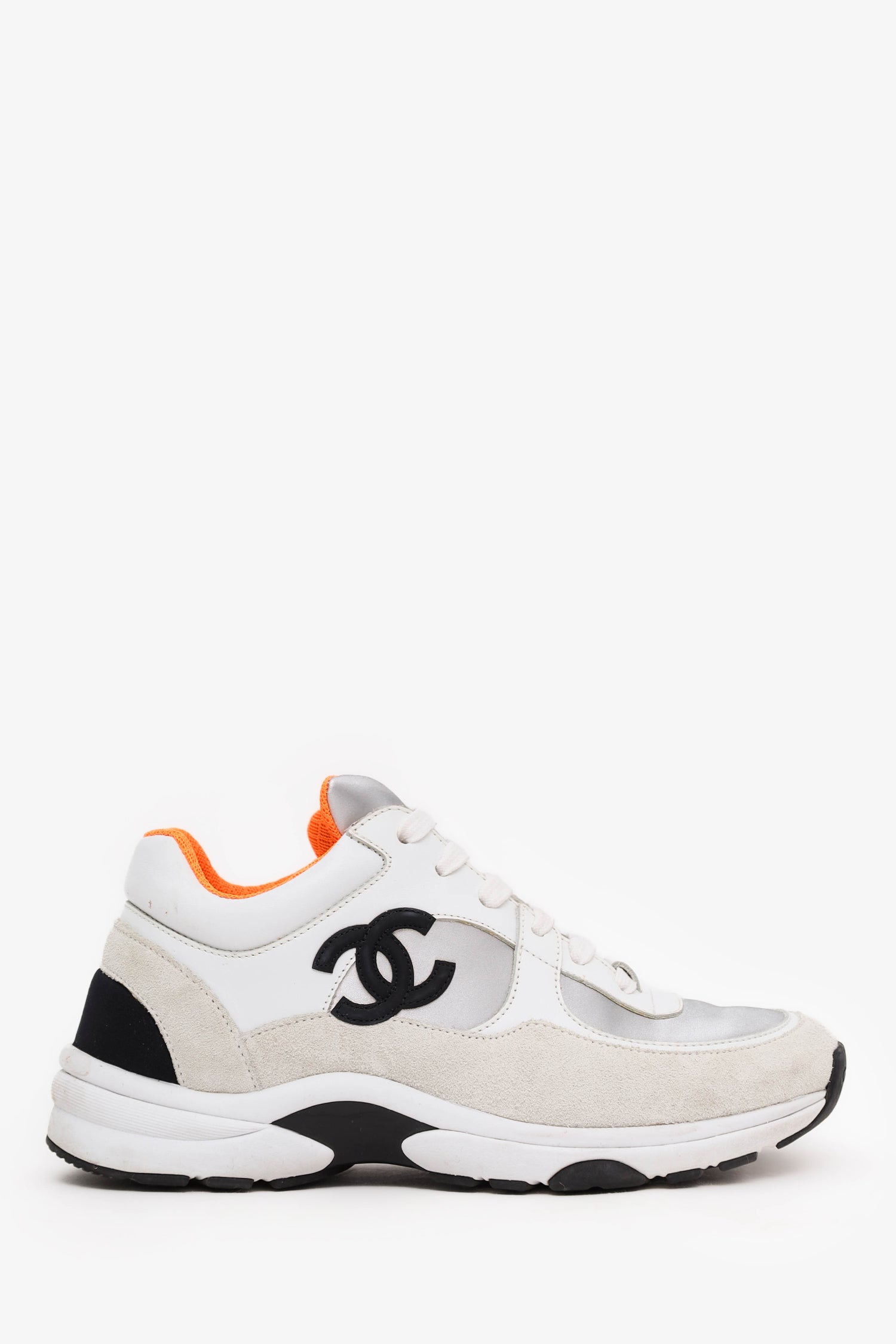 Pre-Loved Chanel™ White/Orange Suede CC Sneakers Size 35.5