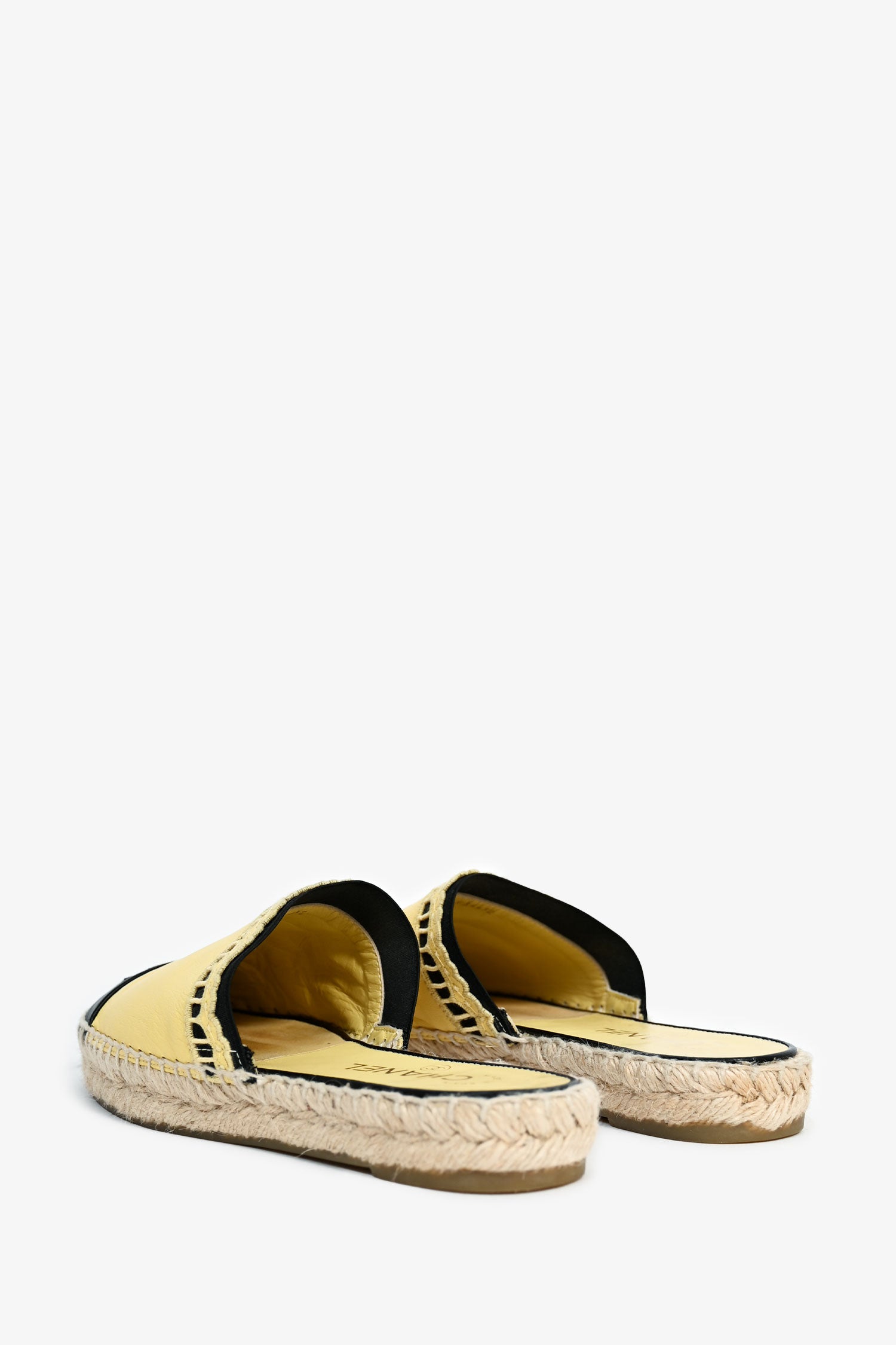 Pre-Loved Chanel™ Yellow/Black Leather CC Espadrille Slides Size 38