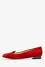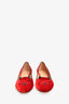 Charlotte Olympia Red Velvet Leather Kitty Flats Size 37.5