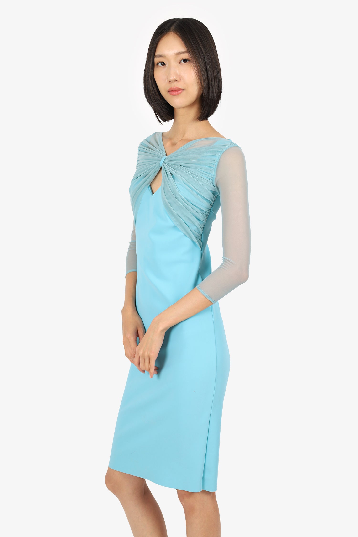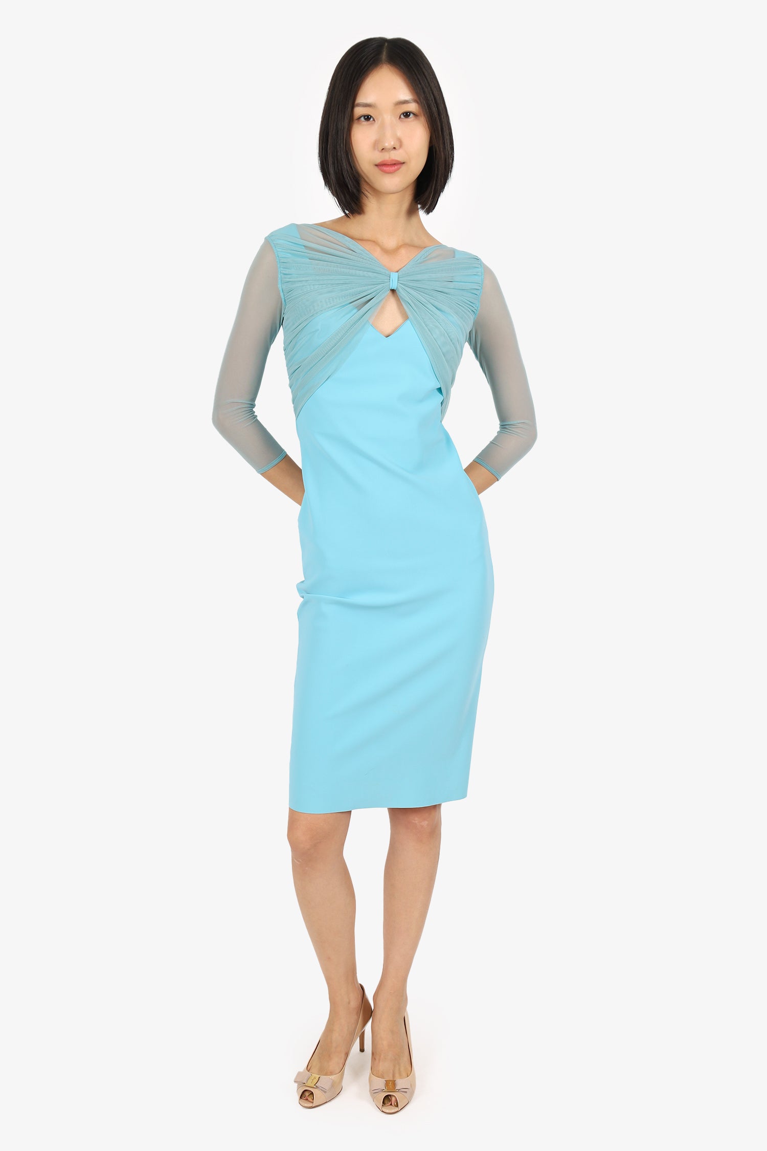 Refresh availabilityChiara Boni La Petite Robe Blue Bow Mesh Sleeve Midi Dress. Pull-on. Round neckline. Mesh neckline and sleeves. Front cut-out detail. Tonal stitching.