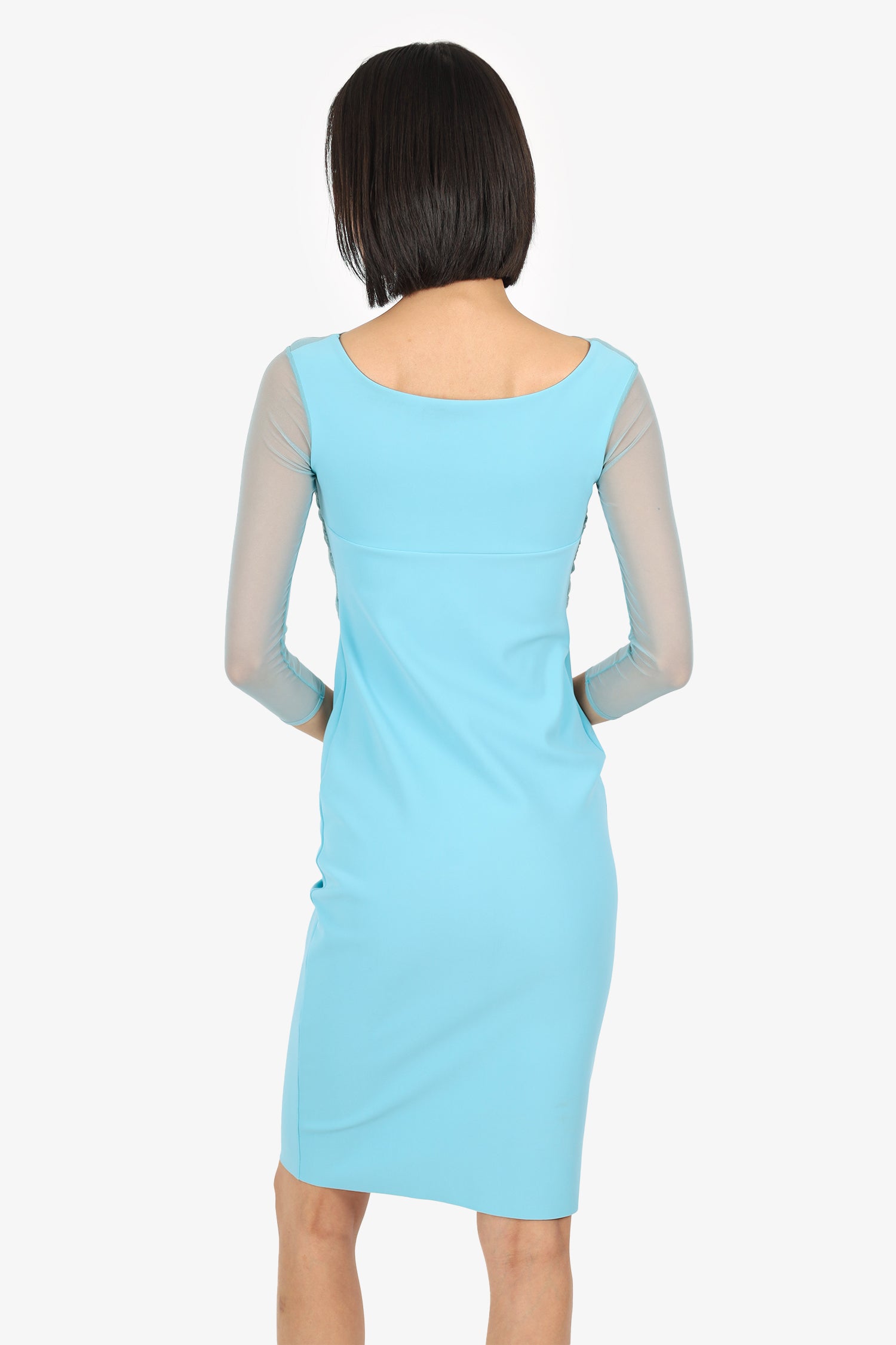 Chiara Boni La Petite Robe Blue Bow Mesh Sleeve Midi Dress Size 40