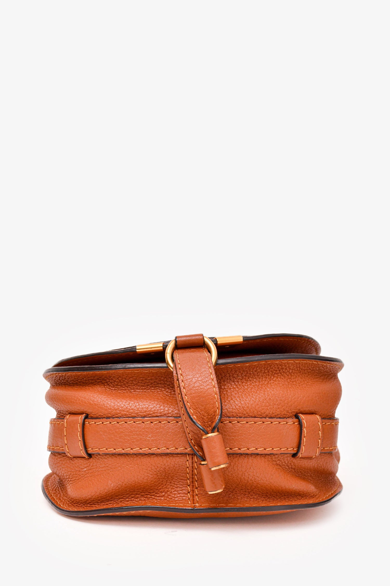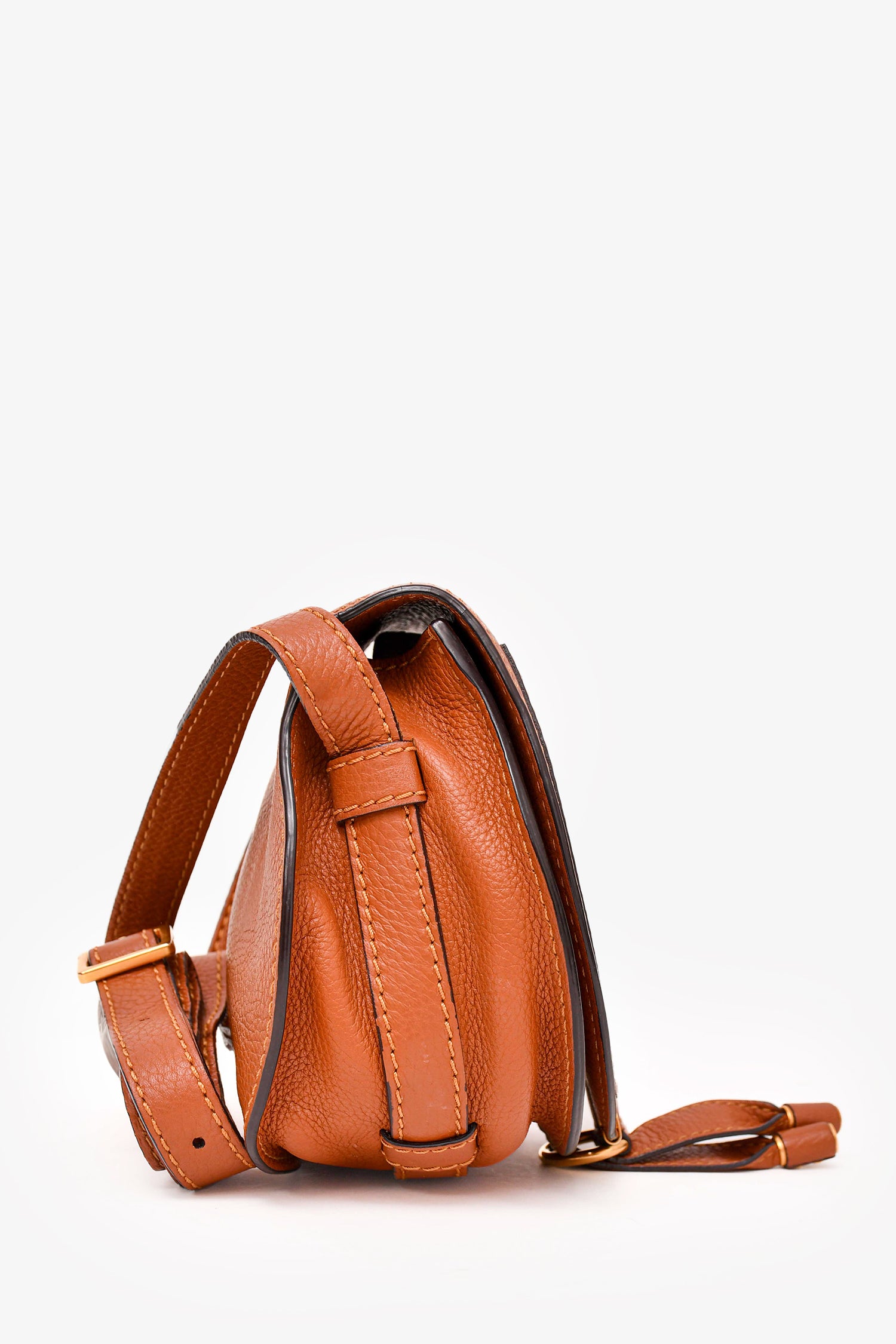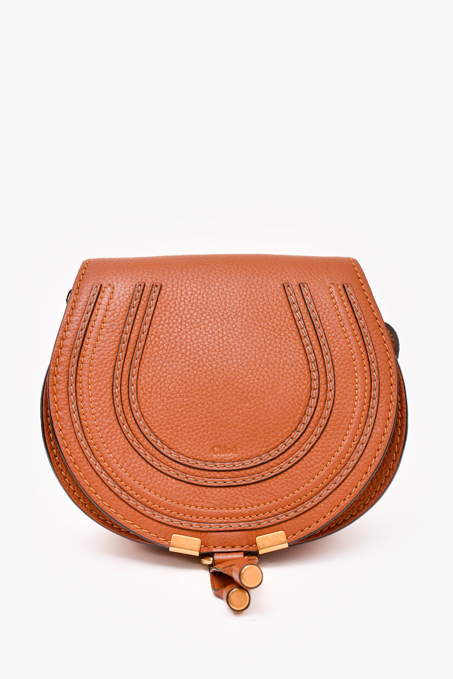 Refresh availabilityChloe 2016 Brown Leather Small Marcie Crossbody. Top flap closure with toggle. Two interior pockets. Buckle at the strap. Gold-tone hardware. Tonal stitching.