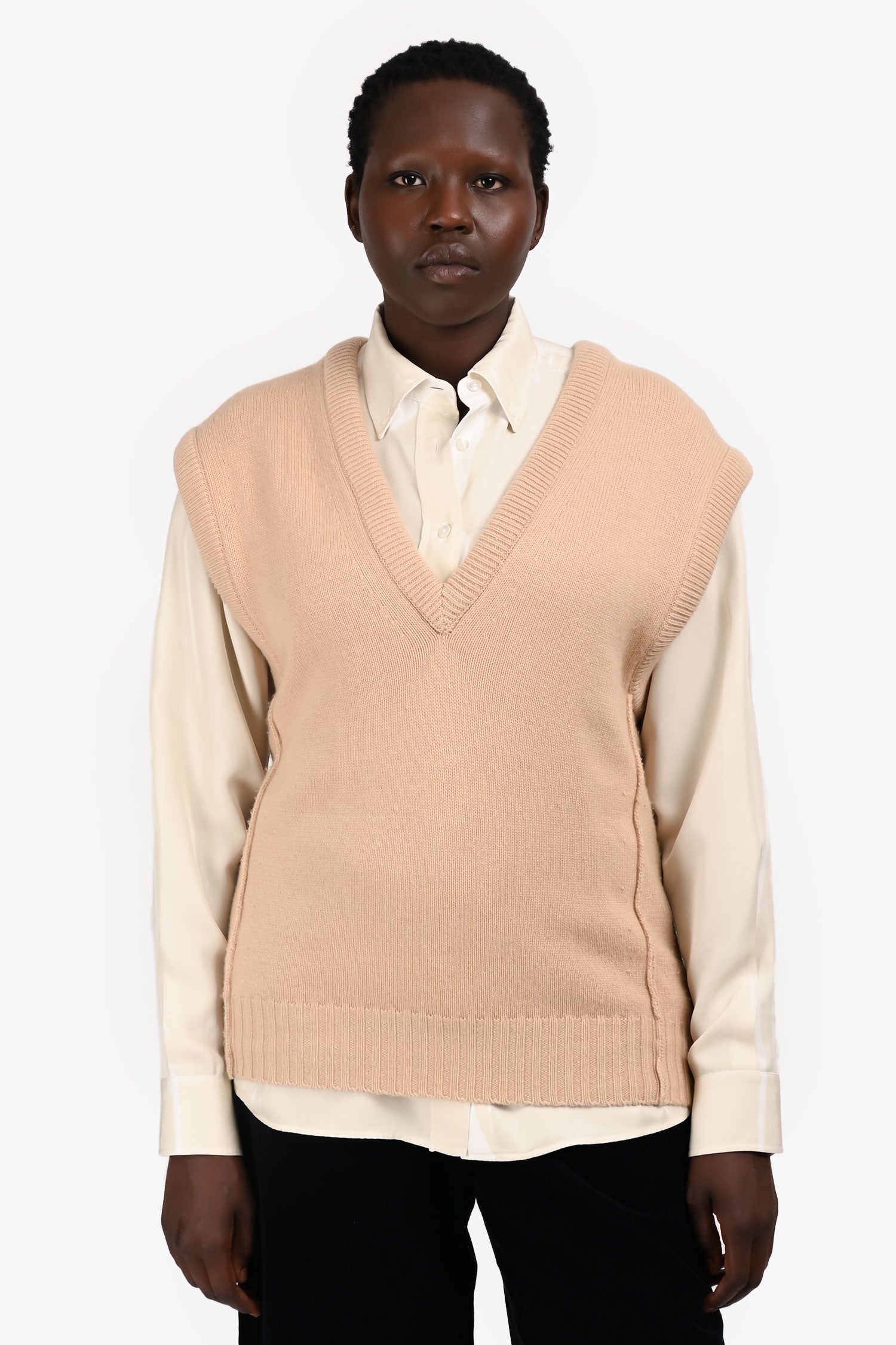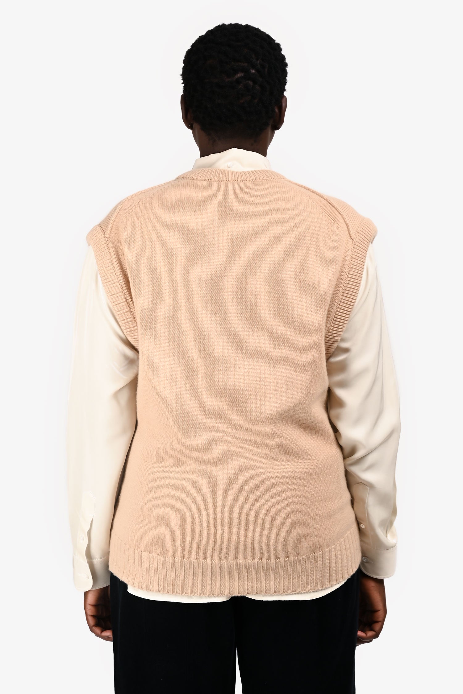 Refresh availabilityChloe Beige Cashmere V-Neck Sweater Vest. Pull-on. Ribbed neck and hem.