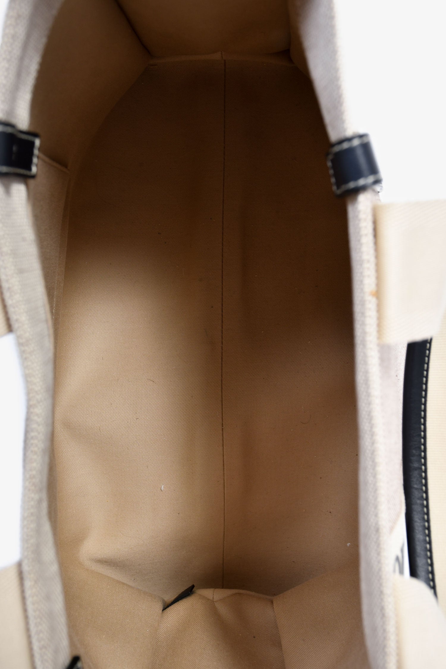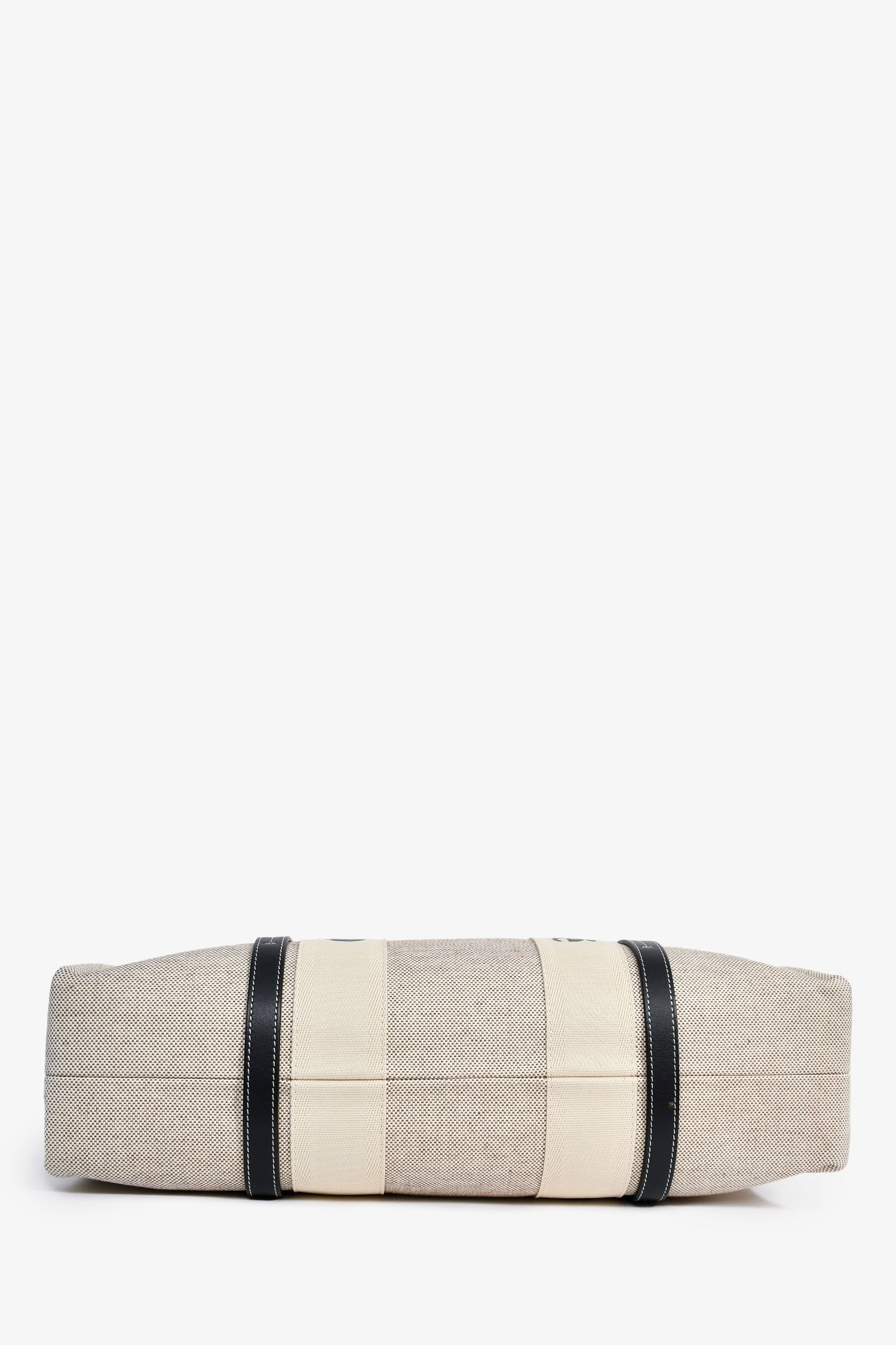 Chloe Beige Fabric Black Leather Trim Logo Woody Large Tote